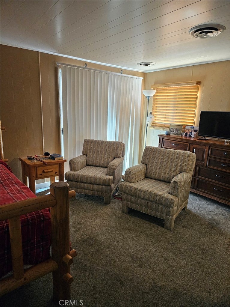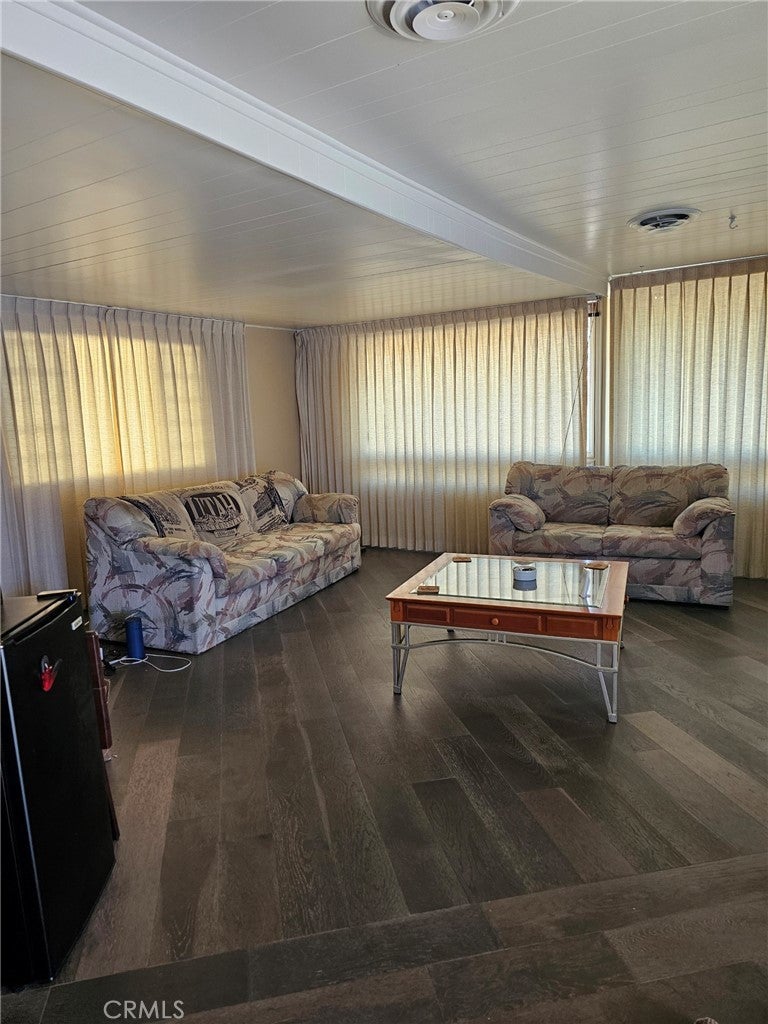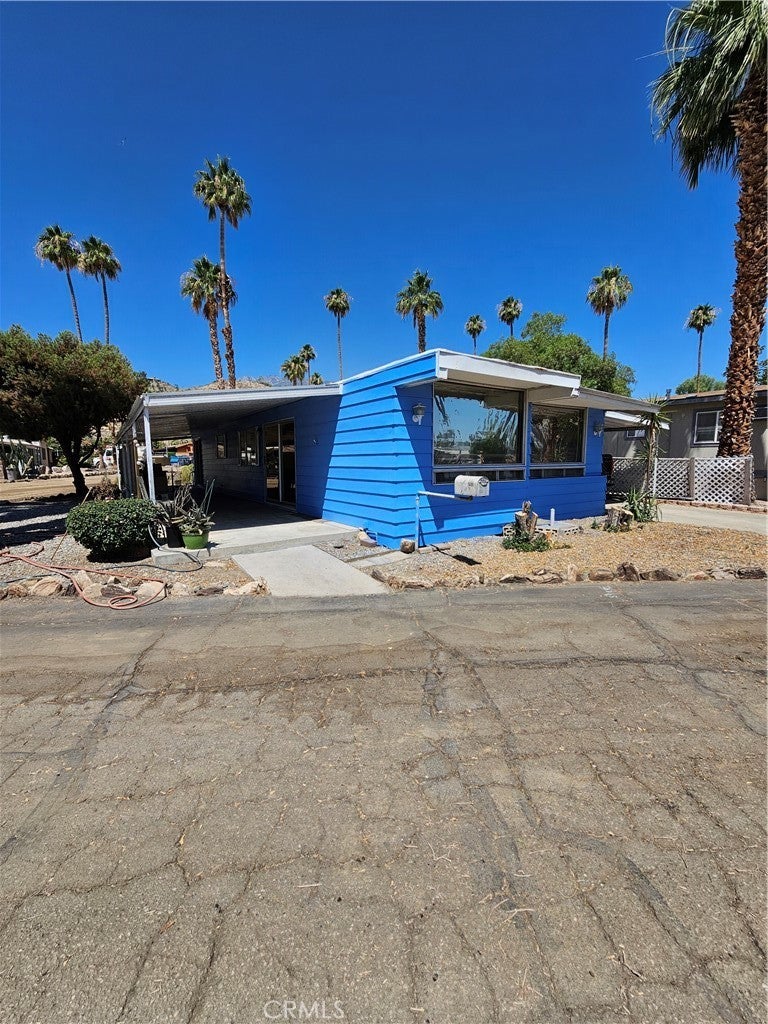 Spacious double wide mobilehome in Safari Park, a very sought after Palm Springs location. Home has a very large bedroom, walk-in closet, wardrobe closet, ensuite bath with a new tile and glass walk in shower with 3 heads on wall selector (rainhead, wand, and conventional),and a bench seat. Hall bathroom with a walk-in shower. All new flooring. Carpeted bedroom and hardwood floors. Central Air & Heating! Large corner lot with 2 covered areas. One carport and another side patio.