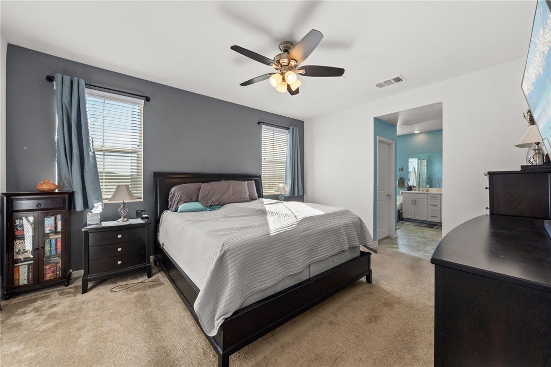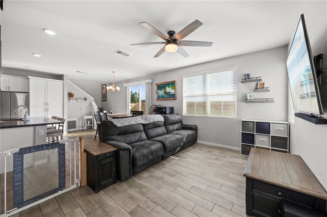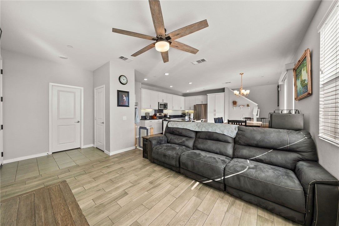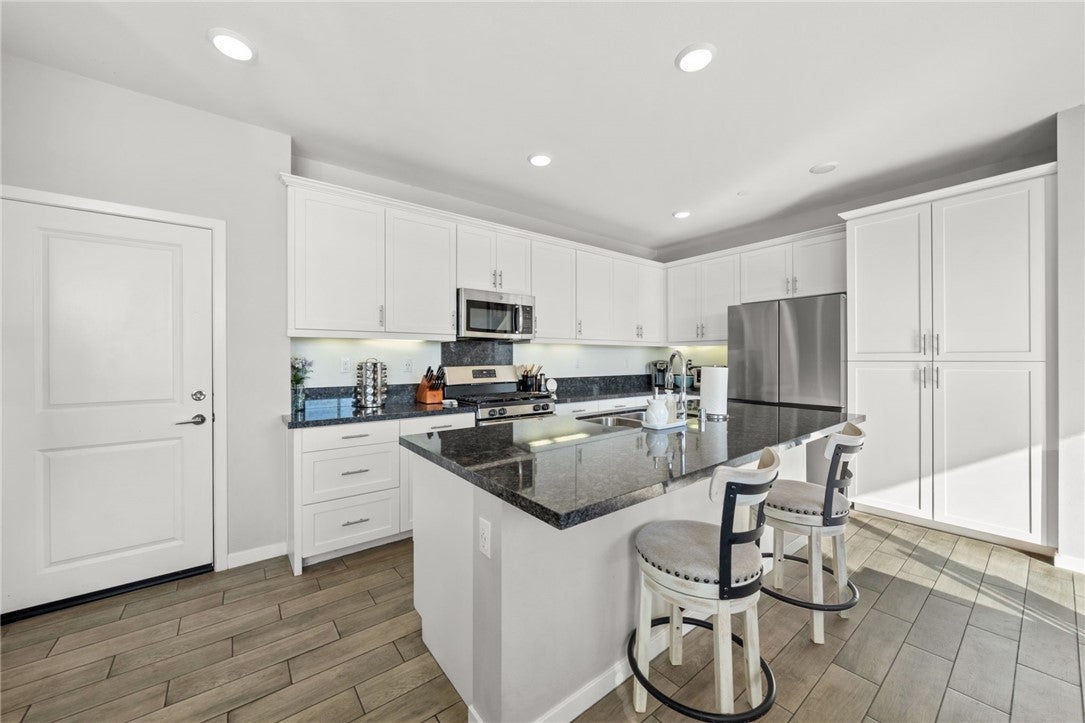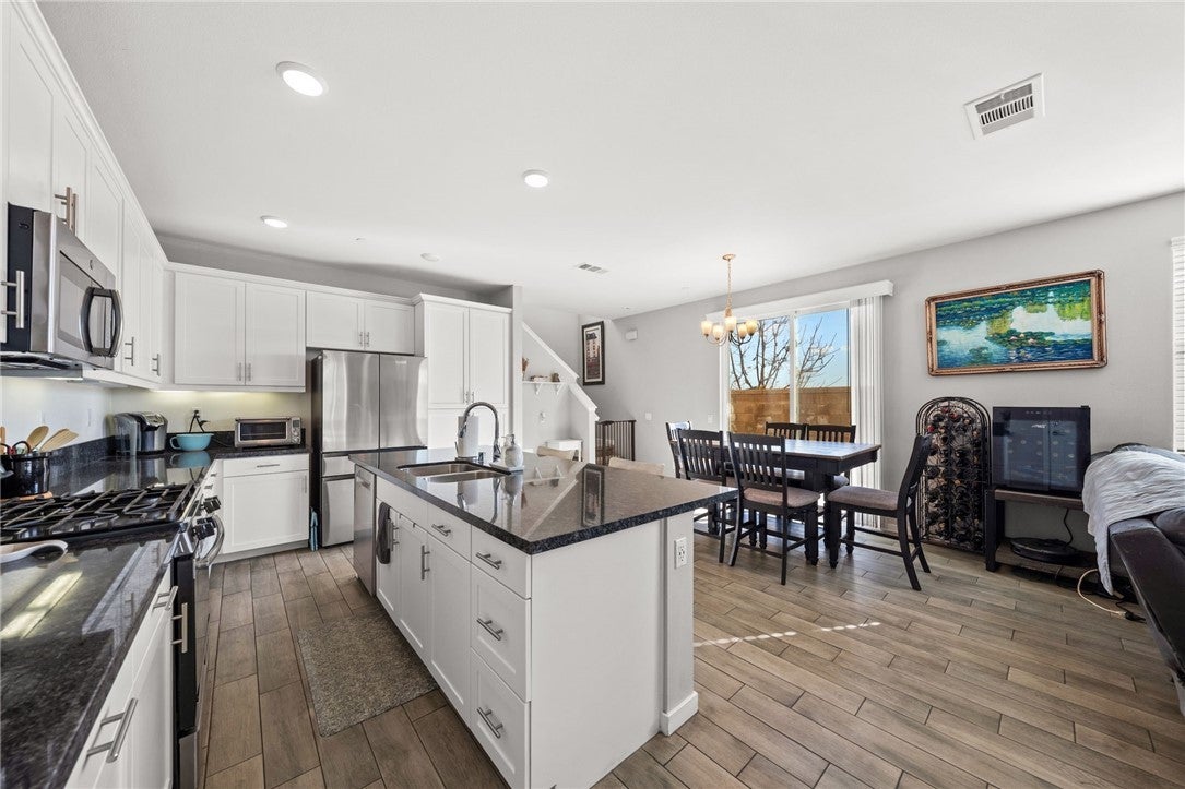 PAID OFF SOLAR! Located in the highly sought after gated community of Vista Bella. This corner lot, two story townhome features an open floor plan with four bedrooms, two and half baths. The open floor concept features a gourmet kitchen with newer GE stainless steel appliances and granite countertops with a functional island that provides extra seating and countertop space. Wood-like tile flooring throughout the first floor. The primary suite features walk in closets and dual sink vanity. Recessed LED lighting throughout, All bedrooms upstairs along with individual laundry room. Solar panels are fully owned, whole house fan, tank-less water heater, water softener and custom window coverings throughout. Two car garage with additional spot right next to driveway and EV charging outlet. Low maintenance backyard with artificial grass and concrete. Whole exterior of home was painted in 2025. Low tax rate and no mello-roos! Located close to freeways for easy commuting access. Close to parks, community recreation, restaurants, Starbucks, Costco and Target.