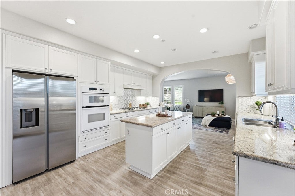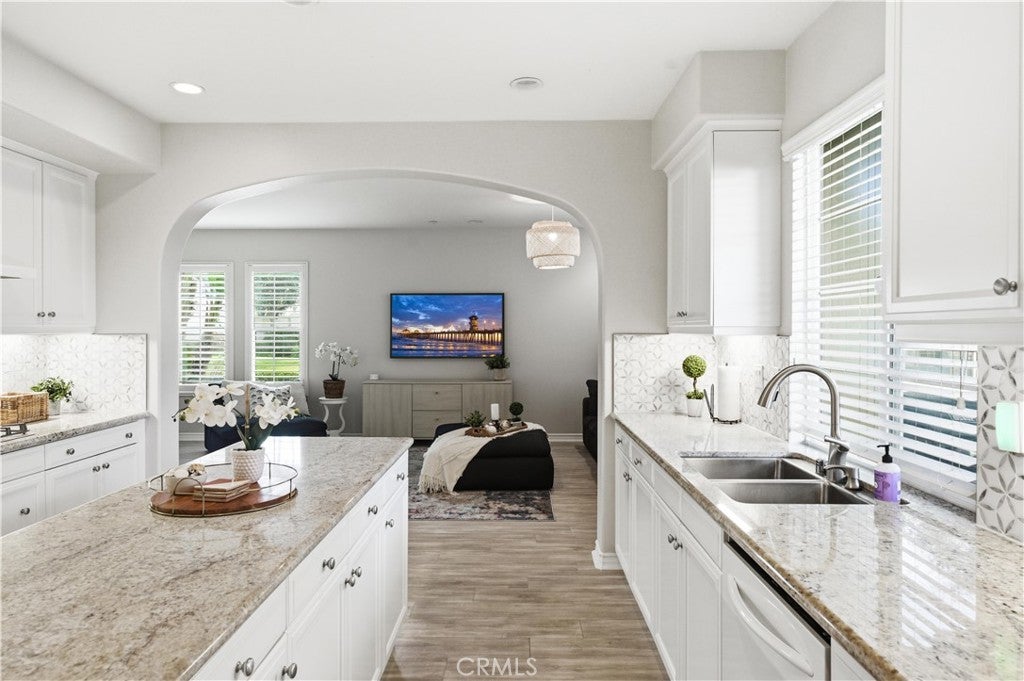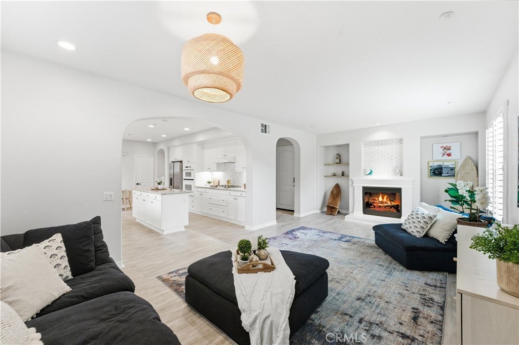 Stunning SeaCove in the exclusive Waterfront Community, Plan 3, ideally located just a few steps from the blue Pacific Ocean in the heart of Huntington Beach—Surf City USA. Resort Living at it's finest in this exquisite home, boasts a superb location, quietly nestled at the back of this exclusive, gated paradise community, this rare and highly sought-after floorplan overlooks a tranquil, beautifully landscaped park with tropical greenery and charming benches to sit and just relax and take in the view. Rarely on the market, this elegant residence offers 3 bedrooms, 2.5 baths, and approximately 1,845 square feet of refined living space, featuring two bedrooms downstairs and a luxurious upstairs primary suite complete with a retreat area and walk-in closet. The open-concept design is enhanced by volume ceilings and upscale finishes throughout, including arched passageways, dual-pane windows, French doors with disappearing screens, plantation shutters, high-end waterproof wood-vinyl flooring, raised-panel interior doors, recessed lighting, and dual-zone central A/C. The sophisticated living room with custom fireplace, media niches, and formal dining area flows seamlessly into a true chef’s kitchen showcasing granite countertops, designer tile backsplash, a large center island, custom white shaker cabinetry, walk-in pantry, white appliances, stainless sinks, and a sun-filled casual dining area with French doors opening to a very private, serene covered patio with paver decking—perfectly positioned to overlook lush natural gardens and a pathway leading to the park. The main level also features an upgraded powder room, a full bath with porcelain tile flooring and walk-in shower with designer tile surround and clear glass enclosure, a spacious storage closet, and an inside laundry room with direct access to the two-car garage featuring epoxy flooring and overhead storage. Upstairs, the primary suite is a true sanctuary with a spa-inspired bathroom offering granite countertops, dual sinks, a romantic soaking tub with travertine surround, porcelain tile flooring, and a separate travertine walk-in shower with sitting bench. Live where others vacation year round in this resort-style beach-close community, ideally situated across from the beach behind the Hilton and Hyatt resorts, and offering its own pool, spa, and BBQ area—just moments from the pier, downtown Huntington Beach, fine dining, and the Pacific City outdoor mall. Coastal living at its finest!!
