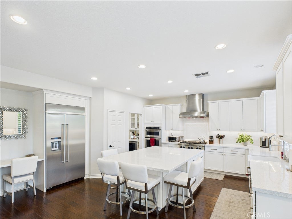 Welcome to 3786 Carson Way, a spacious and stunning home located within the Terraza Neighborhood of Vista Del Verde. Arriving at the home, you are greeted by a well-manicured front yard that leads you through the stone-clad entryway. As you enter the front door, you feel the grandeur and scale of 20+ foot ceilings and the large sweeping staircase. The Formal living room leads you directly past the large formal dining room and into the Kitchen/Great Room. The Recently renovated kitchen is a culinary masterpiece that features custom white shaker cabinetry, an expansive Island, a large farmhouse style sink, quartz countertops, and the full Kitchen-Aid appliance suite, complete with a 6-burner built in stove, double convection oven, dishwasher and built-in refrigerator. Directly adjacent to the kitchen, you will find a pass-through bar area that connects to to the dining room. On the main level, you will also find a bedroom and full bathroom. As you ascend the sweeping staircase, you are met with 4 additional bedrooms, 3 additional full bathrooms and the laundry room. Two of the upstairs bedrooms share a jack-and-jill style bathroom, each with their own private vanity areas. The large primary suite features a private entry way that leads to an oversized bedroom with a private balcony, a bathroom with a soaking tub and separate walk-in shower, and a large walk-in closet. You will find custom touches throughout the home, including plantation shutters in every room, and built in office/work areas in the main-floor bedroom and upstairs hallway. The home has a 3-Car tandem garage and plenty of room for driveway parking. The back yard features a built-in bar and grill, and a cozy sitting area. This highly coveted neighborhood offers upscale living right in the heart of Yorba Linda - in close proximity to luxury amenities such as the Black Gold Golf Club, and within the award-winning Placentia-Yorba Linda School District.