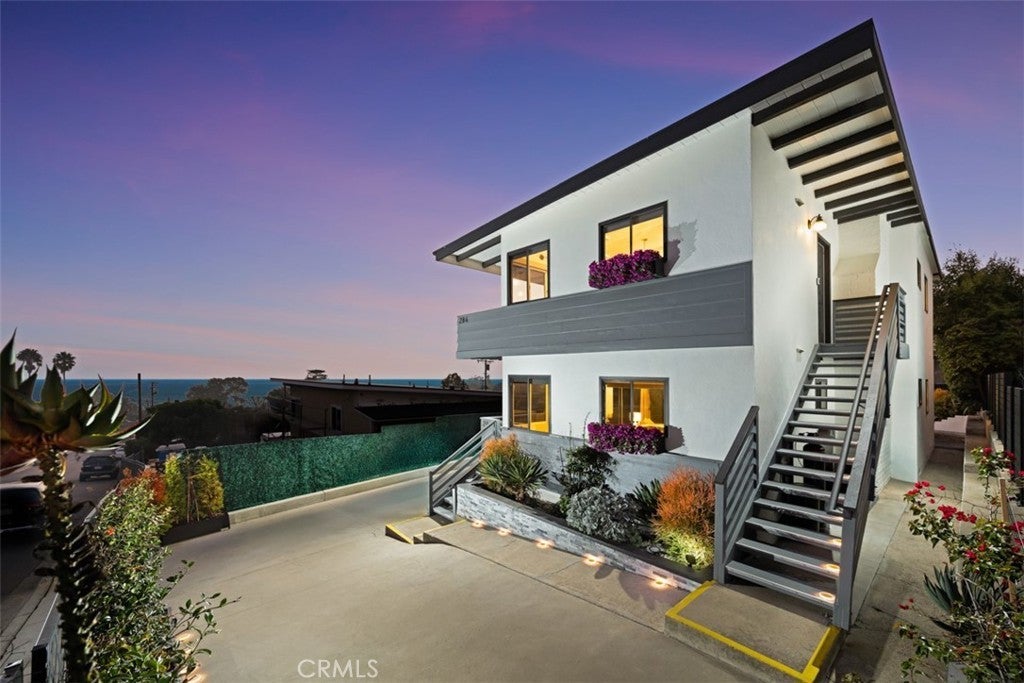 Perched above the coastline in North Laguna Beach, 282–284 Chiquita Street presents a rare, fully updated duplex offering panoramic ocean views and exceptional versatility just moments from Shaw’s Cove and Crescent Bay. Elevated for privacy and outlook, the property captures the essence of coastal living while delivering strong long-term value for both end users and investors. Each residence is oriented to maximize ocean exposure, with expansive decks that extend the living space outdoors—ideal for morning coffee, sunset views, and entertaining. Interiors have been thoughtfully refreshed with wide-plank flooring, crisp cabinetry, and quartz surfaces, creating a modern, beach-forward aesthetic throughout. The upper unit features vaulted, exposed-beam ceilings that amplify natural light and volume, while the lower unit offers equally impressive views with a seamless indoor-outdoor flow. The exterior has been comprehensively updated, including new paint, fencing, and refined wood detailing, enhancing curb appeal and reflecting the care invested in the property. Both units benefit from private laundry, along with separate gas and water meters—providing flexibility for owner-occupants, multi-generational living, or income-producing use. A standout feature for North Laguna, the property includes two detached single-car garages with additional storage, plus generous driveway parking for up to eight vehicles. A shared rear patio offers a quiet retreat for relaxation or gatherings and presents potential for future enhancement. With ADU possibilities and drought-tolerant landscaping, the property is both low-maintenance and forward-thinking. Whether utilized as a primary residence with supplemental income, a full investment property, or a coastal retreat, 282–284 Chiquita Street delivers location, views, and flexibility in one of Laguna Beach’s most coveted neighborhoods.