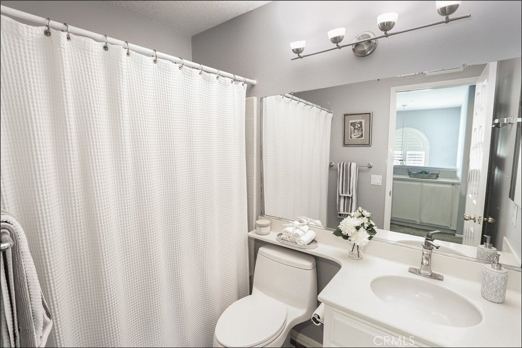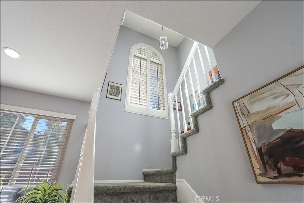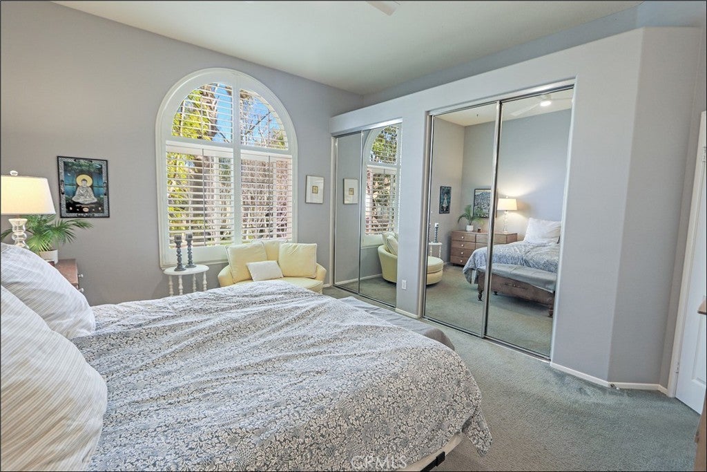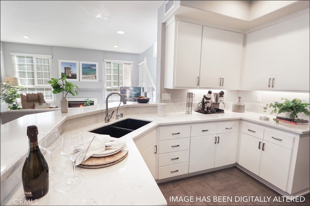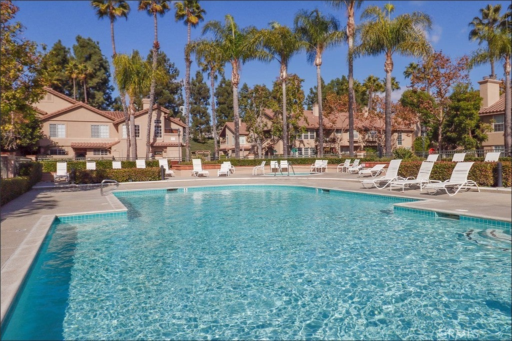 EXCEPTIONAL END UNIT LOCATION PERFECTLY SITUATED NEXT TO A LARGE GREENBELT AND UPGRADES THROUGHOUT! Highly sought after end unit townhouse style property in the desirable Calabria community offering a large living room with fireplace, dining room with upgraded chandelier and a stunning kitchen with upgraded Viatera Minuet Quartz countertops and backsplash, upgraded cabinet drawers and doors, designer style black composite sink, Price Pfister faucet and stainless steel appliances including new range and microwave oven in 2025 and Bosch dishwasher in 2024. Main floor also features a powder room with upgraded fixtures and full size laundry area and direct access to the attached garage with upgraded garage door with keyless entry installed in 2025 and Auto EV charger. Second story featuring a spacious primary suite with vaulted ceilings, wall to wall closet with mirrored doors and a large primary bathroom featuring a large vanity with dual sinks, tub and shower and upgraded fixtures. Large second bedroom and full hall bathroom with tub and shower and upgraded fixtures complete the second story. Newer and upgraded dual glazed windows, upgraded Goodman heating and AC, Bradford White water heater in 2023, repiping with PEX completed in 2018, custom plantation shutters and window blinds, upgraded lighting fixtures, ceiling fans, toilets, Panasonic bathroom fans, added Reverse Osmosis water system and BBQ grill on patio which is connected to the property gas line. All this plus resort style Calabria community pool and spa, excellent proximity to Aliso Viejo Town Center with shops, restaurants and entertainment, highly sought after schools, easy toll road (73) and beach access (via 133) and nearby hiking, biking and nature trails! More description and photos Coming Soon!
