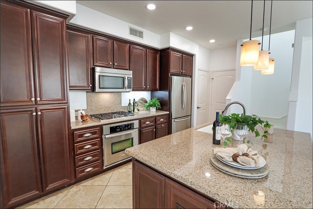 EXCEPTIONAL END UNIT LOCATION NEXT TO PARK AND AWESOME TWO STORY TOWNHOUSE STYLE FLOOR PLAN OFFERING THE GREAT ROOM CONCEPT, 3 BEDROOMS PLUS AN OFFICE LOFT WITH BUILT-INS! Large kitchen with huge island open to the living areas featuring granite countertops, lots of cabinets, stainless style appliances and designer style pendant lighting, oversized powder room at main level and direct access to the two-car attached garage with added metal racks. Second story features 3 bedrooms plus an office loft with built-ins which is perfect as home office. Spacious primary suite with huge walk-in closet and large primary bathroom offering a large walk-in shower with separate tub, and large vanity with dual sinks, full second bathroom, large second and 3rd bedroom plus the office loft and a large laundry room complete the second story. Fresh interior paint, brand new carpeting, brand new water heater as of January 2026, custom built-ins in the great room area, upgraded lighting fixtures, upgraded 50 AMP dedicated 240 Volt circuit for level two EV charging outlet in the garage, new garage door springs as of December 2025, and so much more. All this plus the highly desirable Golf community with resort style amenities, award winning schools, excellent proximity to Aliso Viejo Town Center with shops, restaurants and entertainment, easy toll road (73) and beach access (via 133) and nearby hiking, biking and nature trails!
