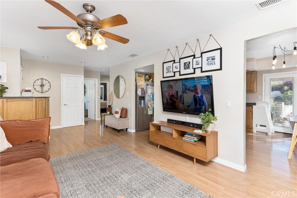 Move-in ready 3-bedroom, 2-bath Yucaipa home offering comfort, style, and energy efficiency with solar panels, a new whole-house fan, and a new AC unit. Enter into a large family room featuring attractive wood laminate flooring, perfect for everyday living and gatherings. The spacious dining area includes French doors that open to a park-like backyard, creating an ideal indoor-outdoor flow. The kitchen showcases Corian countertops, stainless steel appliances, abundant cabinetry, and generous prep space. All three bedrooms are spacious and well-appointed. The large guest bathroom includes built-in storage for added convenience. The primary suite is a true retreat, featuring a cozy fireplace, French doors leading to the backyard, dual sinks, a separate toilet area, and a shower/tub combination with a relaxing jetted spa tub. Additional highlights include a retrofitted foundation to withstand large earthquakes, newer windows, wood shutters throughout, and solar panel to help reduce energy costs. Step outside to enjoy a private, expansive backyard with covered patios perfect for entertaining, plus plenty of room for toys, gardening, or adding a pool. A wonderful opportunity to enjoy comfortable, efficient living in a desirable Yucaipa location. Great space for kids with the park across the street, and there’s a lot of upside to living in Yucaipa with all of the wineries coming.