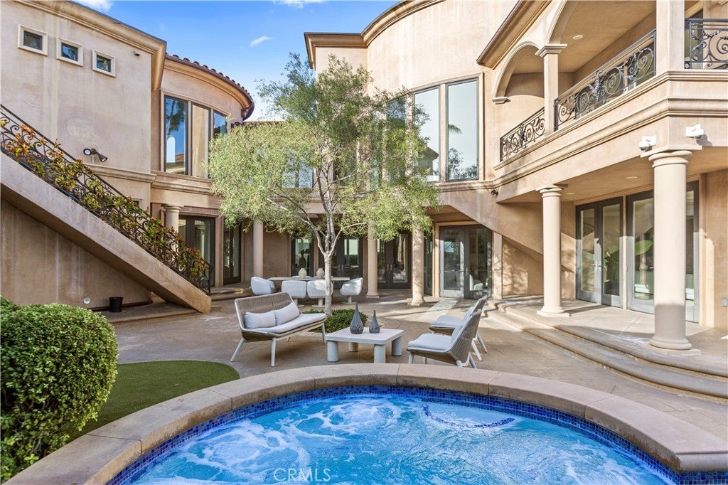 Truly, an outstanding opportunity for this meticulously maintained Mediterranean style custom residence located within the highly prestigious & coveted “Oceanfront,” 24 hr. guard gated community of Ritz Cove. This impeccable 7200 sqft residence contains 5 bedrooms, 8 bathrooms, a two-story entry foyer showcasing a beautiful circular staircase, 3 fireplaces, an in-home theater, a 3rd story viewing deck with “dumb waiter” access. The main floor of the residence has impeccable "Crema Marfil' marble flooring throughout & offers a main floor office, 2 additional bathrooms, a main floor ensuite bedroom, generous breakfast/ family dining, & an outstanding family room with custom built-ins & fireplace. Contiguous to the family room a stunning bar area with wine storage & direct access to the ‘Resort Style” backyard with BBQ area, spa & pool inclusive of water feature, gas fire pots & outdoor staircase to the 2nd floor of the home!! This floor plan is absolutely “open and spacious” as well as “light & bright!” The Center Island, gourmet kitchen, features custom cabinetry, counters & back splashes of Marmot Belgia Calcutta Marble, 6 burner Viking range, subzero refrigerator/freezer, 3 dishwashers, & built in coffee maker! The gracious Primary Suite contains a sitting area, dual sided fireplace, coffee bar area with sink & refrigerator, 2 exceptional walk-in closets with custom cabinetry, a luxurious Primary bath suite with "Iceberg Blue Quartzite' multiple head steam shower, soaking tub & 3 vanity areas. All ancillary bedrooms offer oversize walk-in closets. Additional upgrades include an upstairs laundry room with 2 washers & dryer sets & built in storage, central AC & vacuum system, newer water softening system & water heater, Home Guardian Security Cameras, RING doorbell & cameras, Control 4 Smart Home System for TVs, heating, lighting, & music! This “end of cul-de-sac” residence features a “gated auto driveway,” finished oversize 3 car garage with an abundance of storage options. The manicured grounds are extremely private & an entertainer’s dream. The Ritz Cove community provides a “private gated” entrance to the walking/bicycle path along the Pacific Ocean including direct beach access! Located contiguous to the Ritz Carlton Resort & minutes away from Dana point Harbor & Lantern District featuring numerous dining & shopping options. This is absolutely “a must see “property for any Purchaser in this price range & a 10 out of 10!