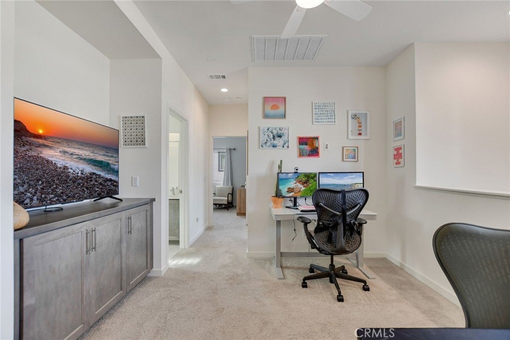 Welcome to the highly sought-after Residence Two in the newly built Artisan community of Yucaipa, ideally located directly across from the community park. This exceptional 3-bedroom, 2.5-bath home with a spacious loft blends thoughtful design, modern comfort, and outstanding energy efficiency. The open-concept main level features 9-foot ceilings, LED recessed lighting, and an inviting layout designed for everyday living and entertaining. The kitchen serves as the heart of the home with stainless steel appliances, spacious kitchen island, and a walk-in pantry, offering both style and functionality. Upstairs, the flexible loft is ideal for a home office, media room, or additional living area. The primary suite provides a comfortable retreat and includes a generously sized walk-in closet, while two additional bedrooms complete the upper level. This home stands apart with its finished garage featuring a steel roll-up door and an impressive suite of smart home and energy-efficient features, including a “right-sized” energy-efficient solar system, dual-pane Milgard low-E vinyl windows, R-38 roof insulation, R-21 wall insulation, energy-efficient weatherstripping, and water-efficient plumbing fixtures making this home Title 24 energy efficient compliant. Comfort is enhanced with a 14 SEER electric heat pump with air handler, while smart features include a Ring Pro wireless doorbell, LiftMaster WiFi garage door opener, and a WiFi programmable thermostat. Outdoor living is equally impressive with a full-size driveway, landscaped and fully fenced front yard, and a professionally landscaped backyard featuring low-maintenance artificial turf and a retaining wall bench, perfect for relaxing or entertaining. Located minutes from Yucaipa Pointe Shopping Center, including the new Trader Joe’s, popular restaurants, and everyday conveniences, with easy access to historic Uptown Yucaipa and downtown Redlands. With its park-front location, modern upgrades, paid-off solar, and exceptional efficiency, this Artisan Residence Two offers a rare opportunity to enjoy elevated Yucaipa living.