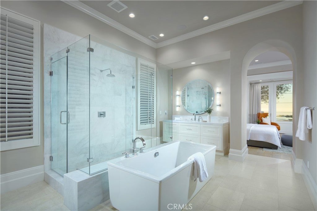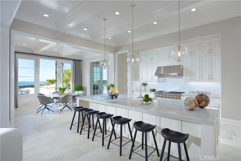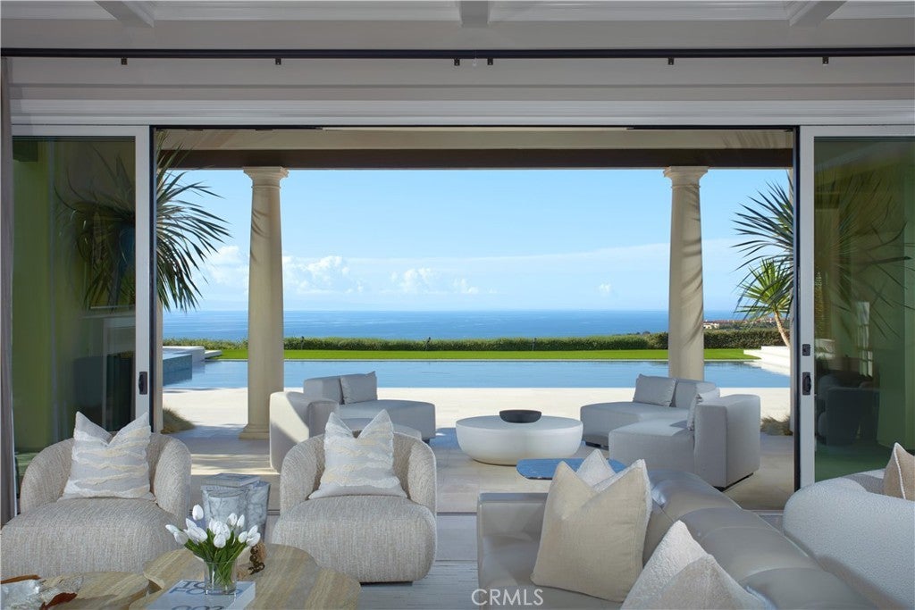 Perfectly positioned on an expansive 20,027-square-foot front-row lot in the exclusive Coral Crest enclave of Crystal Cove, 11 Spinnaker captures the essence of modern coastal luxury with sweeping, unobstructed views of the Pacific Ocean, coastline, and rolling hills. Built by The New Home Company and barely lived in since completion, this 5-bedroom, 6-bath residence spans approximately 6,400 square feet and combines architectural sophistication, panoramic vistas, and exceptional privacy. A private motor court, framed by dual two-car garages, leads to a grand entry courtyard with a fireplace—creating a warm, welcoming introduction to the home’s seamless indoor-outdoor flow. Sliding glass walls open to light-filled living spaces anchored by an open-concept great room, gourmet kitchen, and breakfast area. Designed for both grand entertaining and relaxed living, the home features a climate-controlled wine room and a secondary catering kitchen to support effortless hospitality. The main level hosts three ensuite bedrooms, including a primary suite, while the upper-level features two additional ensuite bedrooms—one serving as a secondary primary suite with stunning ocean views—and a versatile bonus room. A private guest casita with its own entrance off the courtyard provides ideal accommodations for guests or multi-generational living. Walls of glass disappear to reveal a resort-caliber backyard featuring a magnificent pool, spa, and covered loggia—all set against the backdrop of the Pacific. The home’s open layout, exceptional natural light, and thoughtful finishes, including white oak flooring and stone countertops, create a turnkey living experience that blends elegance with livability. Located within the 24/7 guard-gated community of Crystal Cove, residents enjoy access to The Canyon Club, a private social and recreational venue, as well as direct entry to Crystal Cove State Park, pristine beaches, and the nearby Crystal Cove Promenade for world-class shopping and dining. 11 Spinnaker offers a rare front-row opportunity to experience the finest in Southern California coastal living—where luxury, design, and natural beauty converge.