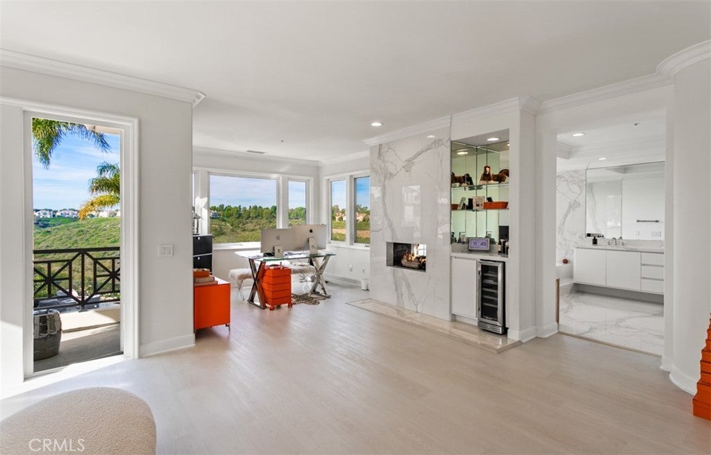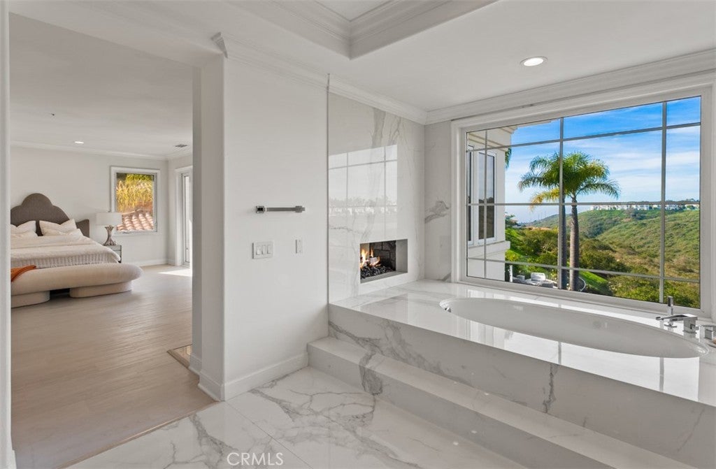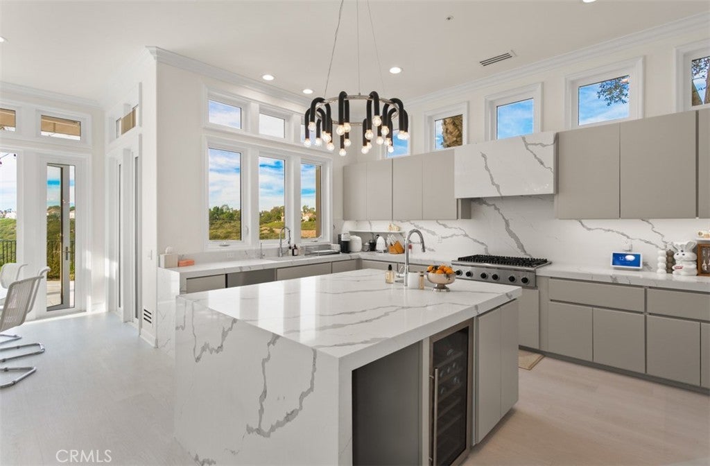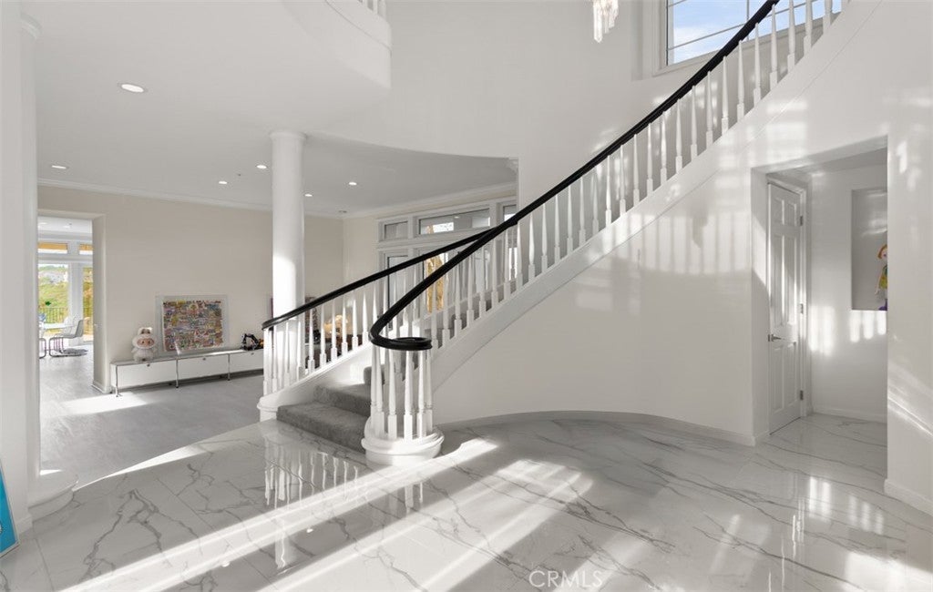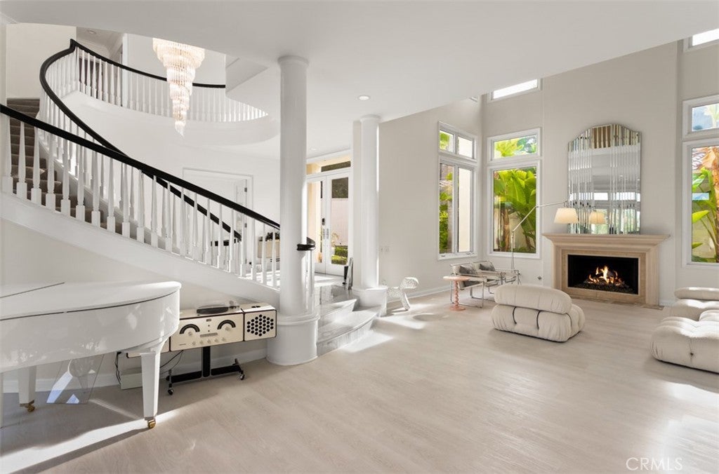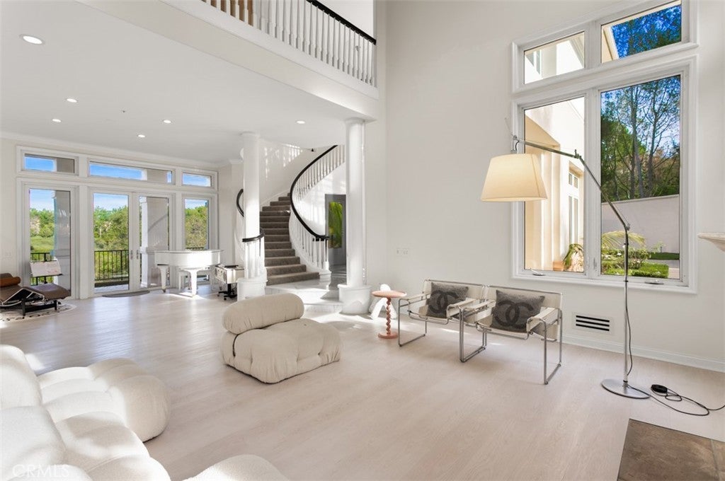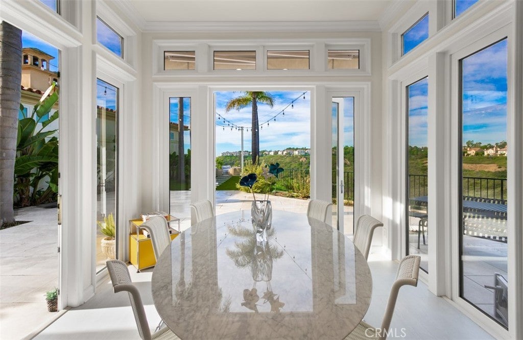 Located at the end of a long private driveway on a premier cul-de-sac lot within the exclusive guard-gated community of Santa Lucia, 1 Monterey Pine Drive offers exceptional privacy, manicured surroundings, and sweeping canyon and ocean-view moments—arguably one of the most desirable sites and locations in Newport Coast. Framed by lush landscaping and generous open space on two sides, this extremely private residence spans approximately 3,649 square feet and features four bedrooms and five bathrooms. A gated entry and glass double doors introduce a dramatic two-story foyer filled with natural light and architectural volume. The main level is defined by walls of glass throughout, formal living and dining rooms, two fireplaces, and an open-concept family room that flows seamlessly into the kitchen. Recently renovated, the gourmet kitchen is anchored by a generous center island and enhanced by new designer appliances and custom cabinetry imported from Italy, blending elevated design with everyday functionality. A breakfast nook opens to the rear grounds, where tranquil canyon views provide a serene backdrop for outdoor dining and entertaining. Also on the main level is an office or guest bedroom with a newly renovated ensuite bath, along with a three-car garage. Upstairs, three spacious bedrooms—each with its own recently updated full bath—offer comfort and privacy. The newly refreshed primary suite is a true retreat, featuring a sitting area, double-sided fireplace, jetted tub, walk-in shower, expansive walk-in closet, and a private terrace capturing beautiful views of Newport Harbor, rolling hillsides, and the distant coastline. Perched above Buck Gully, Santa Lucia is a coveted enclave of 103 detached homes, offering a rare balance of security, tranquility, and proximity to the best of Newport Coast, including Fashion Island, Crystal Cove’s beaches and state park, hiking and biking trails, top-rated schools, and John Wayne Airport. With its exceptional location, spacious floor plan, and thoughtful updates—including a recently updated HVAC system—1 Monterey Pine Drive presents a compelling opportunity in one of Orange County’s most prestigious communities.