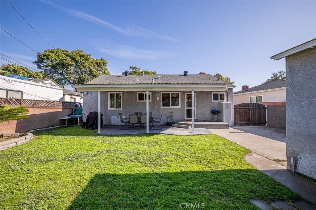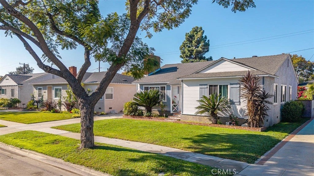Welcome to 3483 Shipway Avenue, a charming single-level home located in one of Long Beach’s most desirable neighborhoods. Situated on a generous 5,187 sq. ft. lot, this well-maintained residence offers classic curb appeal with a lush grassy front yard, mature landscaping, and a long driveway leading to a detached two-car garage. Step inside to a warm and inviting living room featuring beautiful hardwood floors, plantation shutters, and a striking brick fireplace that serves as the heart of the home. The living area flows seamlessly into the dining space, creating an open and comfortable setting ideal for everyday living or entertaining guests. Large windows throughout allow for abundant natural light, enhancing the home’s welcoming atmosphere. The kitchen offers timeless character with solid wood cabinetry, ample counter space, stainless steel appliances, and a functional layout that opens to the dining area. Just beyond, direct access to the backyard makes indoor-outdoor living easy and convenient. The thoughtfully designed single-level floor plan continues into the private living quarters, where you’ll find three well-proportioned bedrooms with generous closet space. A full hallway bathroom features a shower/tub combination and updated vanity, serving all bedrooms efficiently. Out back, the spacious yard provides endless possibilities. A covered patio creates a perfect setting for outdoor dining or relaxing, while the grassy lawn and surrounding landscaping offer plenty of room for entertaining, gardening, or future expansion. The detached garage and additional driveway space add both convenience and flexibility. Ideally located near parks, schools, shopping, dining, and the Long Beach airport, this home also offers easy access to major freeways and is just minutes from El Dorado East Regional Park and the nearby golf course, making it a prime spot for those who value both tranquility and accessibility. This is a wonderful opportunity to own a classic Long Beach home in a highly sought-after area. Schedule your private showing today and experience the potential of 3483 Shipway Avenue.