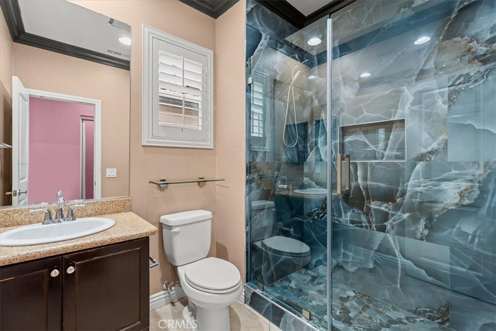 COMMUTER friendly RARE opportunity to OWN a piece of paradise in a peaceful & SAFE GATED Community of Crescent Heights in the heart of Placentia in close proximity to the 91 & 55 & 57 & 5 freeways. 4 Bedroom 4 Bath option for 5th Bedroom. OPEN FLOOR PLAN. French Country Architecture. Amazing VIEWS in the rear. Association Amenities include POOL/SPA, BBQ and front landscaping. Community of Charming UPSCALE designed Seventy Five Homes. 4 Bedrooms upstairs and OPTIONAL 5th BEDROOM DOWNSTAIRS. Built-in Custom Closets in Primary Bedroom. Mirrored Closet Doors in every Bedroom. Ceiling Fans in Every Bedroom and Living room. Google NEST thermostat. Tile flooring Downstairs & Wood Flooring Upstairs. Two Crystal Chandeliers. Custom Crown Molding & Plantation Shutters everywhere. Very Spacious Primary Bedroom and en-suite Bathroom. Gourmet Kitchen with an airy Kitchen Island and Stainless steel appliances and Granite Countertops. ENTERTAINER backyard. 2 Car Garage and Long Driveway that can park additional 3 Cars. Tesla Charger installed on side of home adjacent to Driveway for Convenience. Epoxy coated Garage floor. Sink & Range in Garage makes the Garage double as a man cave. Built in Storage in Garage. Close to Shopping, Restaurants and Award winning Schools such as Glenview Elementary, Esperanza High School. Easy to maintain Paved back & side yard. Citrus & Rose trees. Dual AC Compressors. Filtration Water System. Leased Forty Solar panels to more than satisfy all your Electric needs.