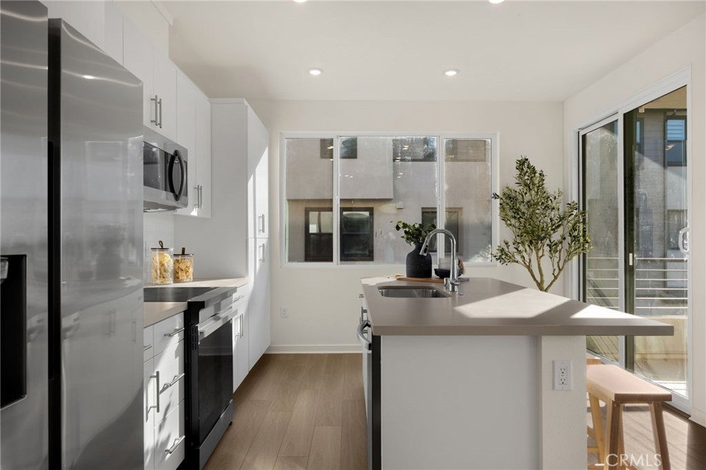 Welcome to this brand-new, three-story townhome located in an intimate enclave of just 44 homes in the heart of Anaheim—designed for modern professionals who value smart layouts, low maintenance living, and unbeatable convenience. This 2-bedroom, 2.5-bath residence with a 2-car attached garage offers a thoughtfully planned floorplan that maximizes both function and natural light. The first level features direct garage access, while the main living level opens to a bright, open-concept kitchen, living, and dining space—perfect for both everyday living and entertaining. The kitchen is anchored by a large center island, ample cabinetry for storage, and flows seamlessly to a private balcony, creating an ideal indoor-outdoor workspace or relaxation zone. Upstairs, you’ll find two generously sized bedrooms, each with its own bathroom—ideal for roommates, guests, or a dedicated home office setup. High ceilings, abundant windows, and a smart, efficient layout make the home feel both airy and purposeful. The community itself is designed for connection and downtime, featuring open green space, BBQ area, fire pit, and a concrete ping-pong table—perfect for unwinding after long workdays or casual weekends with neighbors. Located just minutes from Knott’s Berry Farm, with easy access to the 91 and 5 freeways, this home is perfectly positioned for commuting throughout Orange County and beyond. Additional highlights include a low tax rate of approximately 1.08%, new construction with builder warranties and special builder incentives available during this construction phase. A rare opportunity to own a brand-new, energy-efficient townhome in a central Anaheim location—ideal for professionals seeking modern design, strong long-term value, and a lock-and-leave lifestyle.