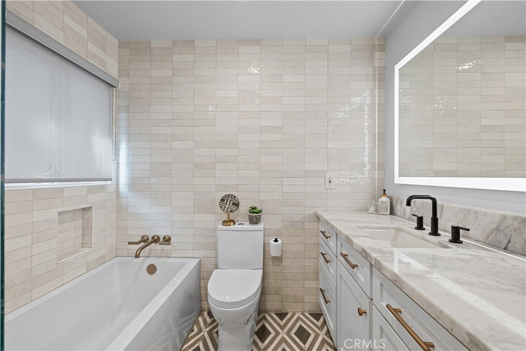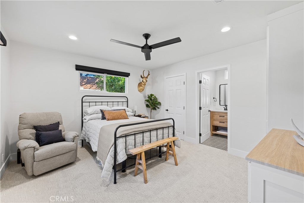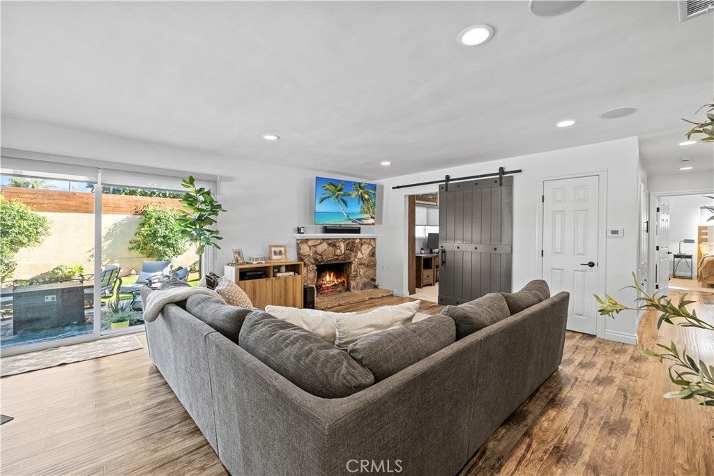 Situated on a corner lot at the end of a tree-lined street in a quiet cul-de-sac, this beautifully updated and remodeled family home offers four bedrooms and three baths in a desirable Orange neighborhood. Mature landscaping enhances curb appeal, while the private outdoor space features a patio ideal for entertaining, a side yard with raised garden planter beds, and a concrete play area perfect for a basketball hoop or outdoor activities. Step inside to find a bright, open layout designed for everyday living. The updated kitchen features brand-new quartz countertops, stainless steel appliances, and a charming dining area. A dry bar adjacent to the kitchen opens to the family room, anchored by a stone fireplace and sliding glass doors that lead to the expansive outdoor entertaining space. Down the hall, all bathrooms have been tastefully updated. The primary suite offers a beautifully appointed ensuite bath with a soaking tub. The second bedroom features custom built-in dressers and storage, while the third bedroom includes its own private bath. The fourth bedroom, currently used as an office/den, also includes a closet, offering flexibility for guests or work-from-home needs. Conveniently located near shopping, schools, and freeway access, this thoughtfully remodeled home combines comfort, functionality, and an ideal setting for modern family living.