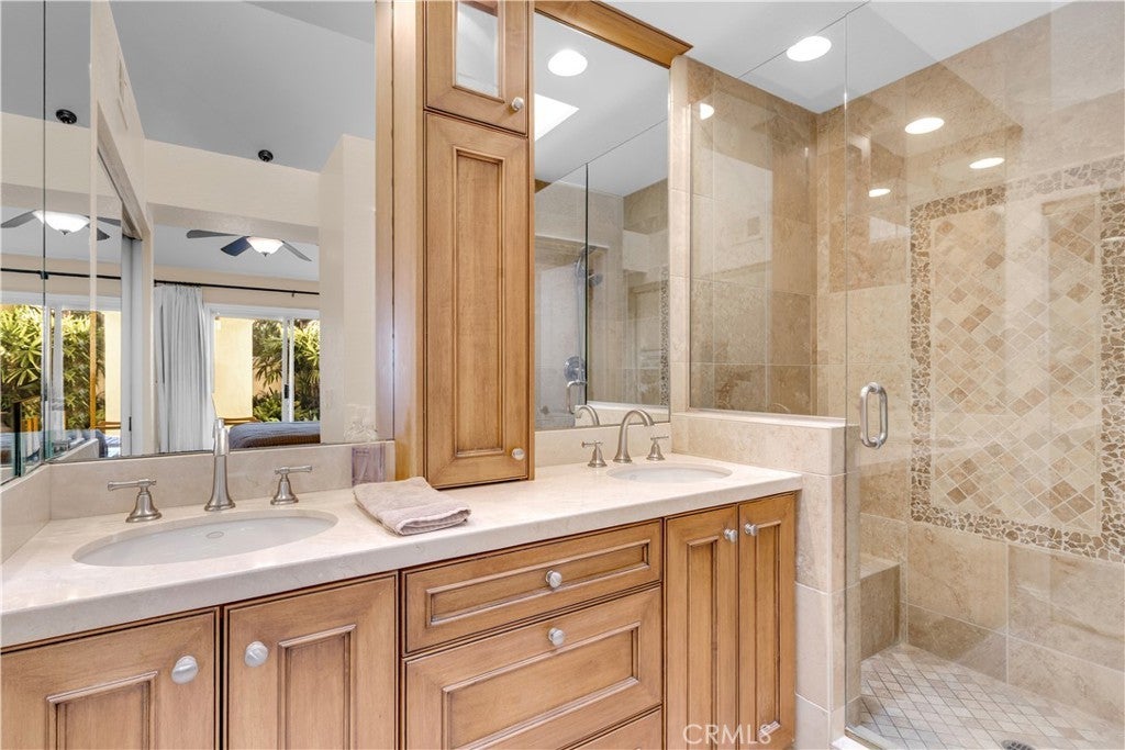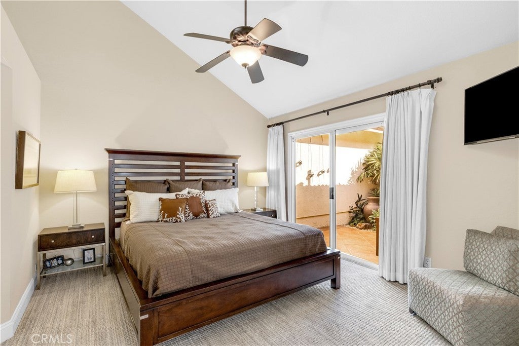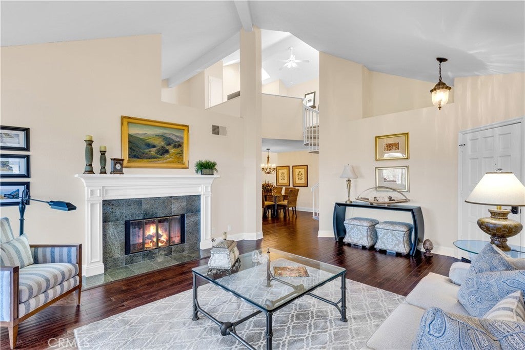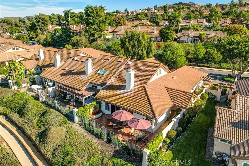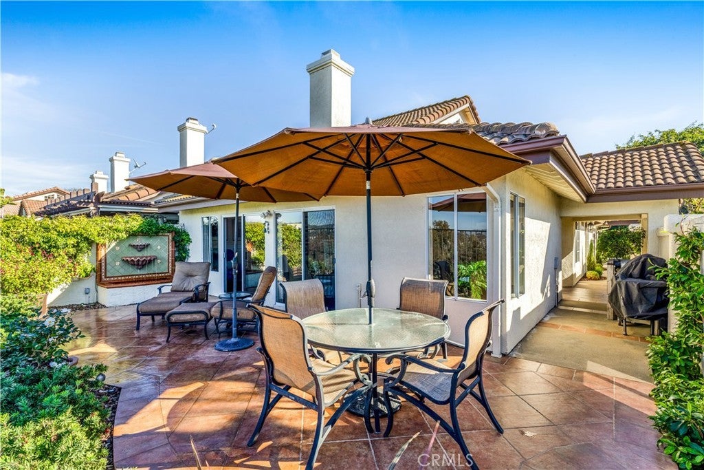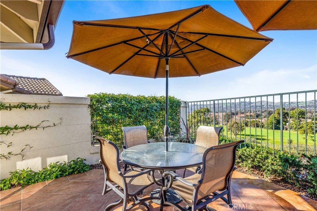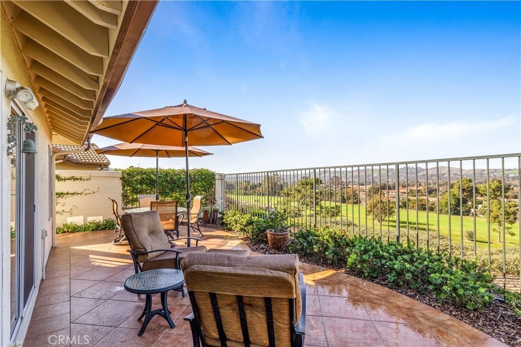 Hear the Mission Bells and Feel the Cool Coastal Breezes from this chic 3-bedroom, 2-bath plus LOFT condo. This END UNIT is perfectly positioned to enjoy full golf course views and a peaceful, resort-like setting. This desirable residence lives like a single level, with all bedrooms thoughtfully located on the main floor and an upstairs loft offering flexible bonus space ideal for a home office, gym, or media room. The open and airy living and dining areas are enhanced by hardwood floors throughout the living space, upgraded fireplace, and abundant natural light, creating an elegant yet comfortable atmosphere. The nicely appointed kitchen features custom cabinetry, tile backsplash, stainless steel appliances, recessed lighting, a perfectly sized eating nook and refined finishes that make it both functional and inviting. The serene primary bedroom offers direct access to a private patio, providing a tranquil retreat. The upgraded primary bath showcases custom cabinetry and a step-in shower with elegant tile work, blending style and sophistication. Secondary bedrooms are generously sized, easily accommodating queen-sized beds and versatile furniture layouts. Outdoors, the tile-finished backyard is fully hardscaped and accented by elegant landscaping, offering a low-maintenance space to relax or entertain while enjoying sweeping golf course views. This beautifully updated condo combines comfort, thoughtful upgrades, and exceptional scenery in a highly desirable setting.