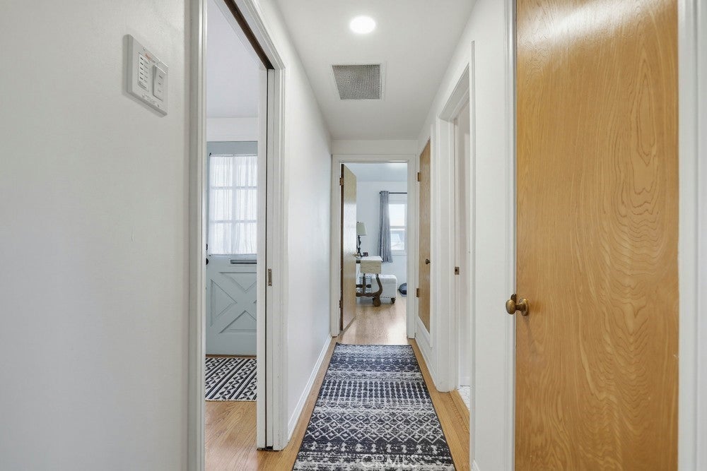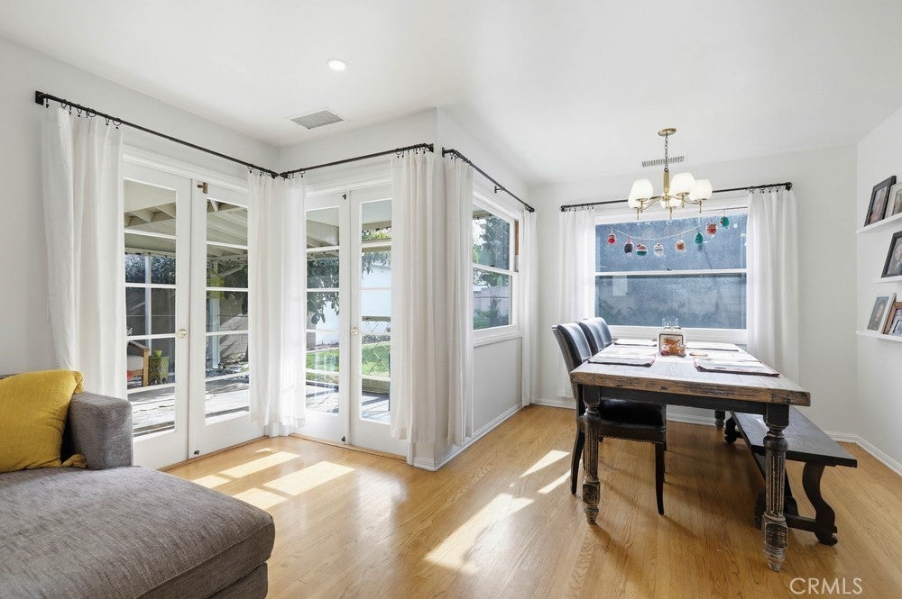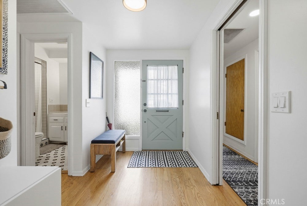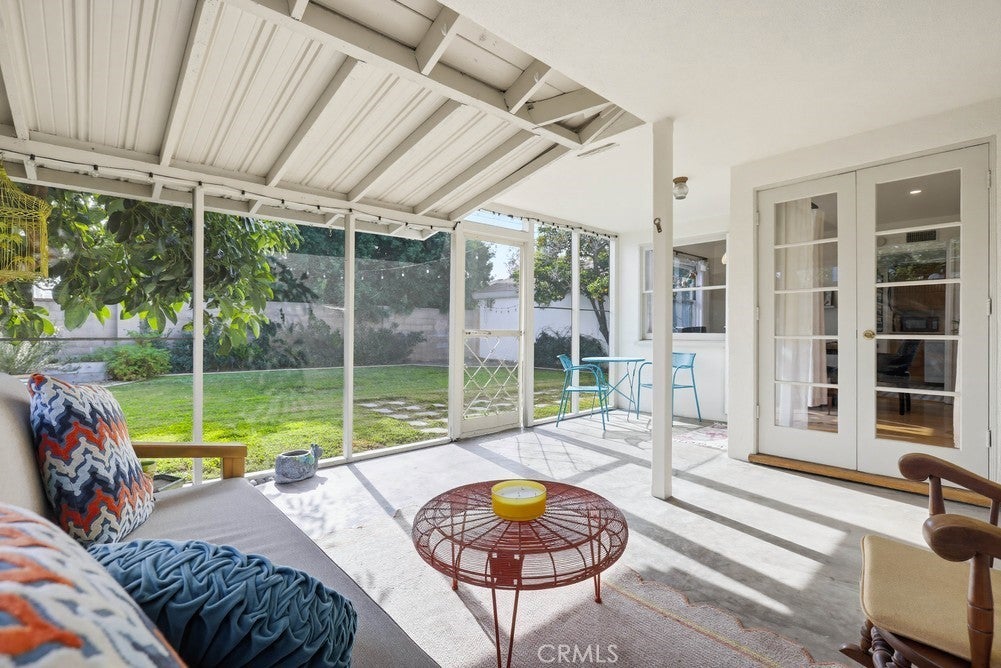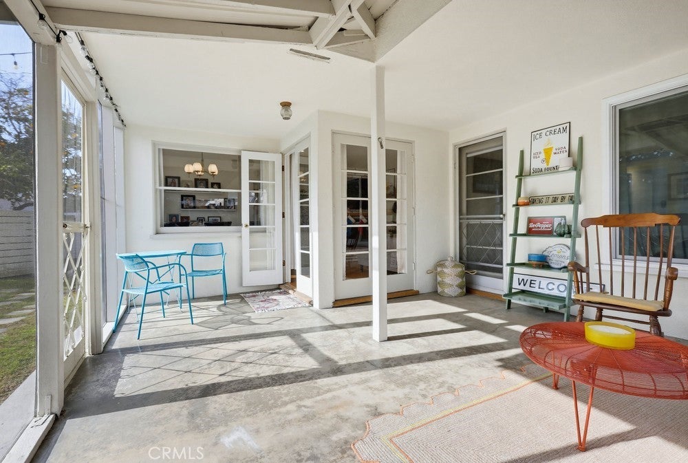 Step into a world of timeless design with this stunning minimalist ranch, a rare find for the mid-century modern purist. Nestled in the prestigious West Floral Park neighborhood, this home perfectly balances authentic 1950s character with the clean, airy lines of modern living. From the winding pathway and frosted pebble mosaic sidelight to the expansive open floor plan, every detail celebrates a vintage aesthetic. Sun-drenched interiors feature glistening hardwood floors and oversized windows that frame views of the lush grounds. The spacious living room, anchored by a painted brick gas fireplace with a raised hearth, flows seamlessly into a dining area that retains its original vintage windows for "picture-perfect" charm. The kitchen is a mid-century chic masterpiece, boasting natural ceramic tile counters, thick wood cabinetry with striking copper hardware, and a matching vintage cooktop and oven now seamlessly updated with a new dishwasher for effortless modern convenience. A classic eat-in counter serves as the social heart of the home, while the adjacent laundry room provides an oversized pantry. Retreat to three generously sized bedrooms, including a rear sanctuary with direct access to the 245 square foot screened sunroom. The two bathrooms are a vintage lover’s dream, featuring hexagonal tile floors, pristine ceramic tiling, and solid wood cabinetry. Outside, the sprawling backyard offers a private oasis of fruit trees and manicured grass, accessible via elegant French doors. While the soul of the home is vintage, the infrastructure is 2025 ready: enjoy peace of mind with updated HVAC and ducting, newer windows, an upgraded 200-amp electrical panel, and a newly installed whole house fan energy efficient ventilation system. Located just minutes from the Orange County School of the Arts (OCSA) and the vibrant social scenes of Old Town Orange and Downtown Santa Ana, this property is more than a home. It’s a lifestyle. Discover the warmth and architectural integrity of West Floral Park’s finest mid-century offering.