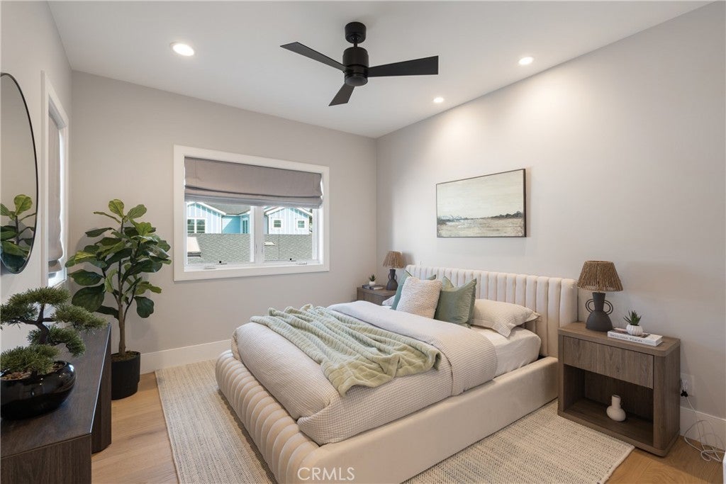 This exceptional 4,398 sqft residence is a 2021 ground-up new construction, thoughtfully designed in a contemporary farmhouse style and located on one of the most charming and sought-after streets in Newport Heights. Set on a 6,375 sq ft lot, the property features a 5-bedroom, 5.5-bath main residence, complemented by a private 1-bedroom, 1-bath Bonus room situated above the detached three-car garage, offering ideal flexibility for guests, extended family, or income-producing studio. A cobblestone walkway leads to an elegant Dutch door, opening into a light-filled interior defined by soaring ceilings and an open, airy floor plan. The main living level is designed for elevated entertaining and effortless indoor-outdoor living. Recent enhancements include professionally leveled flooring throughout the main residence, now finished with White Oak engineered hardwood, along with a full interior paint refresh, creating a refined and cohesive aesthetic. The chef’s kitchen is both functional and striking, anchored by a waterfall-edge island with seating for five and appointed with premium Thermador appliances, a custom German lazy Susan, a spacious walk-in butler’s pantry, breakfast nook, and formal dining area. Expansive pocket doors open to a private courtyard, offering a seamless transition to an inviting outdoor setting ideal for entertaining or quiet retreat. All five bedrooms are ensuite, including a desirable main-level suite for guests. The primary suite serves as a true sanctuary, featuring a fireplace, soaking tub, steam shower, walk-in closet, and private balcony. Located just minutes from the beach and within close proximity to Lido Village, cafes, boutiques, top-rated schools, and coastal amenities, this residence delivers a rare combination of architectural sophistication, modern comfort, and Newport Beach lifestyle appeal.
