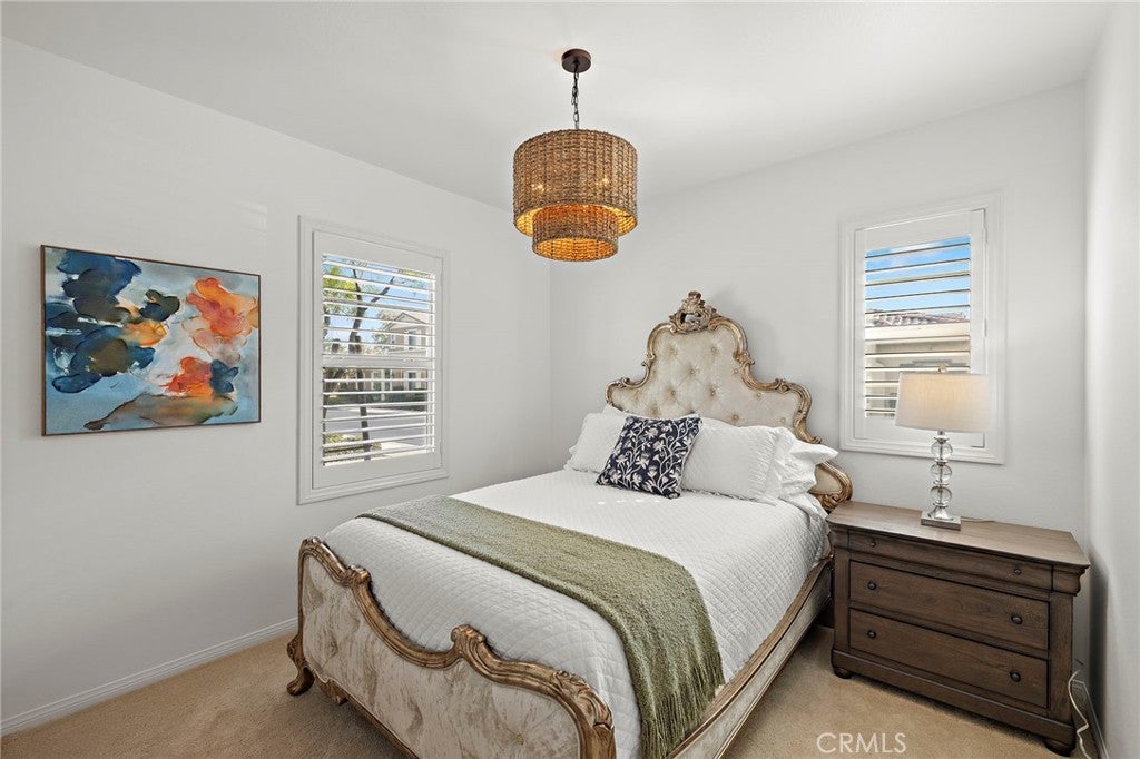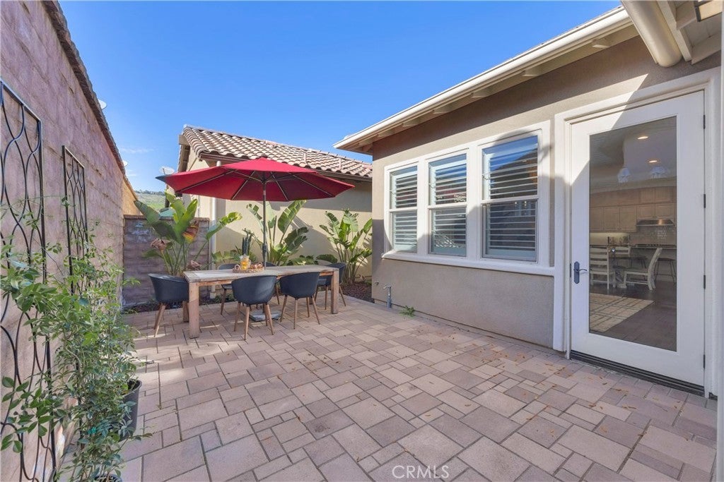 Welcome to a True Single Story retreat nestled in the heart of gated Gavilan Village in Rancho Mission Viejo. This elegant standalone home offers a perfect blend of comfort and style, featuring 3 bedrooms and 2 bathrooms and no attached walls. Designed with an open-concept layout, the living space flows seamlessly, enhanced by high ceilings and modern LED recessed lighting. Beautiful kitchen boasting white cabinetry, stainless steel appliances, gleaming granite countertops, a walk in pantry and an expansive island that doubles as a hub for casual gatherings. The adjacent dining area is large enough for a 6 person dining table and flows into the family room. Your built-in media cabinet is a focal point for the family room and can accommodate an 85" TV for those sports watching gatherings. The home is masterfully designed with privacy in mind positioning the Primary bedroom on one side of the home and the secondary bedrooms on the other side down a hallway. The primary suite is a sanctuary with beautiful chandelier and plantation shutters plus a luxurious en-suite bathroom, featuring double sinks, limestone countertops, an oversized walk-in shower, and walk-in closet. Both secondary bedrooms have overhead chandeliers as well as plantation shutters. They share the full bath with tub/shower combination, framed mirror and quartz countertops. This home is also equipped with a laundry room with upper cabinets, sink and included washer/dryer. The garage has been outfitted with epoxy floors, storage cabinetry and a whole house water softener. Step outside to enjoy the private backyard, beautifully designed with custom pavers and beautiful plants- ideal for hosting friends and family. For recreation, residents benefit from exceptional community amenities steps away at the Hacienda Club including a sparkling pool, relaxing spa, and vibrant club house with clubhouse, workout gym, card rooms and yoga studio. Residents also enjoy access to all of the amenities RMV has to offer including 2 additional 55+ pools, plus all age Amenities including putting green, firepits, bars, and more. One of the beauties of this home is that Gavilan Sendero offers the lowest rate of Mello Roos in RMV and will be significantly less than the Rienda properties. Yet, you are walking distance to the Sendero Gavilan Amenities and have access to all of the other amenities in all three villages. Experience the best of Rancho Mission Viejo living in this exquisite property.