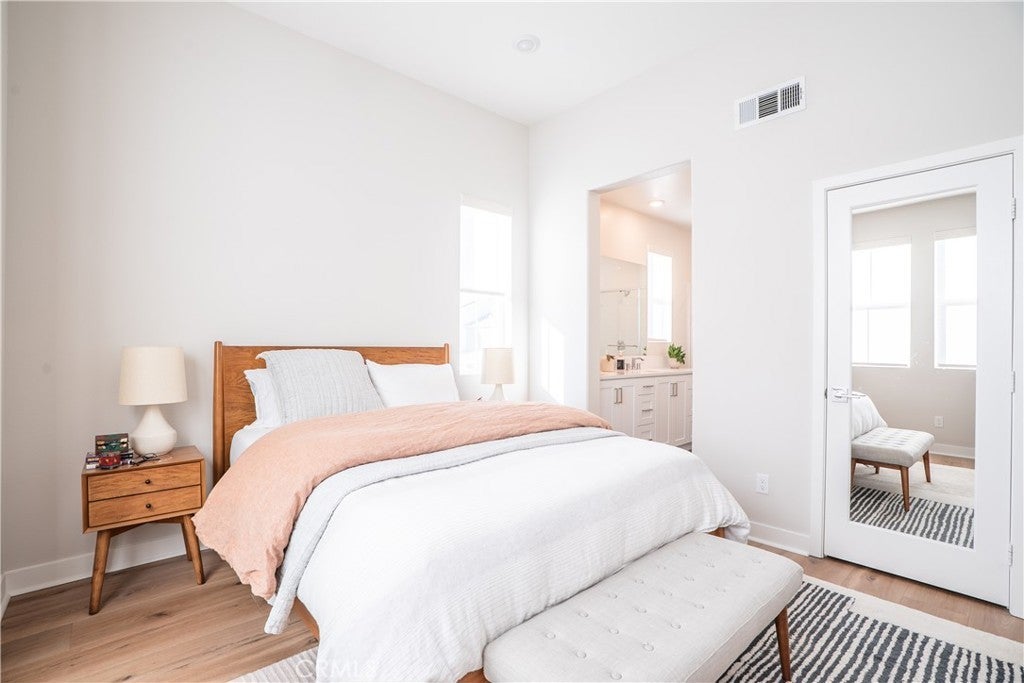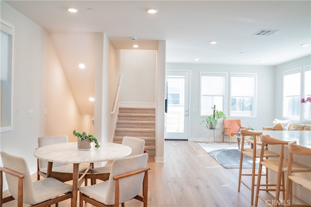 Located in the heart of Rienda, one of Rancho Mission Viejo’s most sought-after newer neighborhoods, this stylish and spacious 2-bedroom residence, with a dedicated office/mixed-use room in the lower level, offers 1,612 sq. ft. of thoughtfully designed living space and a two-car direct-access garage—perfectly blending comfort, convenience, and elevated Southern California living. The main level features an open-concept layout centered around a stunning chef’s kitchen with an oversized island, stainless steel appliances, custom flooring, and abundant natural light. Enjoy seamless indoor-outdoor living with a private balcony, while upstairs you’ll find two bright bedrooms, including a peaceful primary suite and laundry closet. The top level showcases a private rooftop deck with panoramic, 360-degree views—ideal for relaxing or entertaining. Additional highlights include an energy-efficient design with solar, central heating and air, premium water systems with a salt-free softener and alkaline drinking water. Beautiful Mediterranean-inspired garden featuring David Austin roses, French lavender and rosemary, complemented by an automatic drip irrigation system and landscape lighting. The community offers access to resort-style amenities including multiple pools, clubhouses, fitness centers, parks and walking trails. Located within a highly regarded school district, just a short walk to Boulder Pond & Playground and a 15 minute drive to the beach, this home offers the best of modern coastal living.