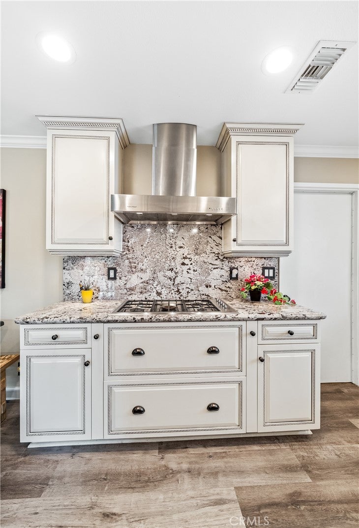 Built-in Features, Ceiling Fan(s), Crown Molding, Eat-in Kitchen, Granite Counters, Living Room Deck Attached, Open Floorplan, Stone Counters, Recessed Lighting