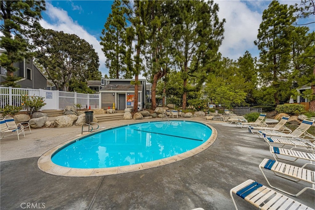 Welcome to Pine Creek Lane – where comfort meets convenience in one of Los Angeles County’s most coveted neighborhoods. This charming 1-bedroom, 1-bathroom end unit condo offers 849 sq. ft. of thoughtfully designed living space. Step inside to find an open-concept floor plan filled with natural light. The spacious living area features a cozy gas fireplace, natural wood flooring throughout the downstairs, creating a warm and inviting atmosphere. The living space is open to the kitchen with raised breakfast bar counter seating, white cabinets, generous counter space, dual basin sink, stainless steel SmartThings® electric range with hood, Whirlpool® dishwasher, recessed lighting, and a glass atrium that brings in plenty of light for entertaining. Step through the dual pane slider to the vinyl fence enclosed patio, convenient clothes washer and dryer included in closet, and gate that opens the HOA maintained grounds with meandering streams, lush landscape, and mature trees. Upstairs is the primary bedroom with vaulted ceilings, skylight, floor to ceiling windows. The bedroom opens to the primary bath with make-up area, operatable window, separate toilet room with cabinets, tiled shower over tub, and walk in closet . Don’t miss your chance to make Pine Creek Ln. your private sanctuary. Two dedicated parking spaces. Walk to the beautifully landscaped HOA pools and spa. Central location just off Pacific Coast Highway. Close to world famous beaches, golf, parks, Long Beach Airport, LAX, Long Beach Grand Prix, shopping, dining, and more.