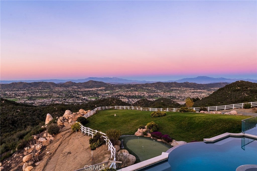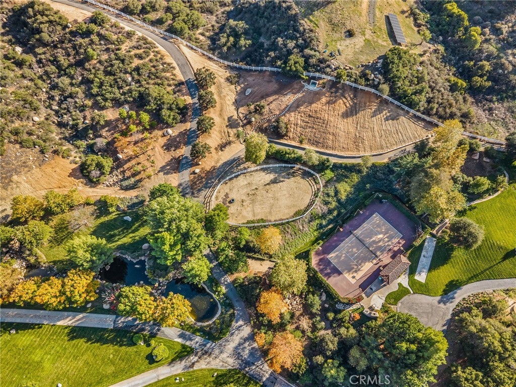 Set across an extraordinary 86 acres spanning five parcels you’ll find the “one-of-a-kind” Golden Crest Ranch Estate and Golden Oaks Park, located in the prestigious La Cresta enclave with minimum 5-acre parcels. A rare combination of commanding scale, privacy, and breathtaking, unobstructed panoramic views that are truly unmatched. At the heart of the property lies Golden Oaks Park, a private recreational sanctuary among lush landscape, ancient oaks and mature trees, featuring a tennis court w/pavilion, outdoor fireplace, shuffleboard, horse shoe pit, 3-hole par-three golf circuit, cowboy fireside camp, round pen, citrus grove, and scenic overlook woven together by meandering paths that pass by a flowing stream, pond and waterfall with seating areas for peaceful reflection. The gated estate is positioned on a 21 acre knoll with sweeping vistas across rolling hills, cool breezes and open sky, consisting of 8550 square feet with 7 beds/9 baths including a separate 3 bed/1 bath guest house of 1950 sf. The main house was completely renovated in 2022 with no expense spared. Featuring a gourmet kitchen, office, gym, home theater, wine storage and a series of elegant living spaces enhanced by 5 fireplaces, soaring beam ceilings, and walls of glass opening through bi-fold doors to bring the landscape indoors. The grounds are a private resort with infinity pool, spa, putting green, outdoor kitchen, covered pavilion with heaters, outdoor fireplace lounge, estimated 2500 sf of expansive decks and covered terraces for grand-scale entertaining. The estate unfolds into a vast canvas with extraordinary potential for equestrian trails, vineyards, orchards, additional residences, supported by an existing barn with infrastructure to accommodate up to 10 horses. Locals tell stories this property was once home to a vibrant gold mine during California’s early mining era. While the original mine was never formally documented and is believed to have been abandoned long ago, the legend persists— the pool service still reportedly discovers flecks of gold in the pool’s filtration system. The property is further enhanced by a large owned solar field, dual water sources (city and well), offering long-term self-sufficiency and cost savings. Featuring a 6 car over-sized garage. With the exceptional infrastructure, this is not simply a home, but a once-in-a-generation family compound offering scale, views, privacy, lifestyle, and future memories without compromise. See MLS OC26015017