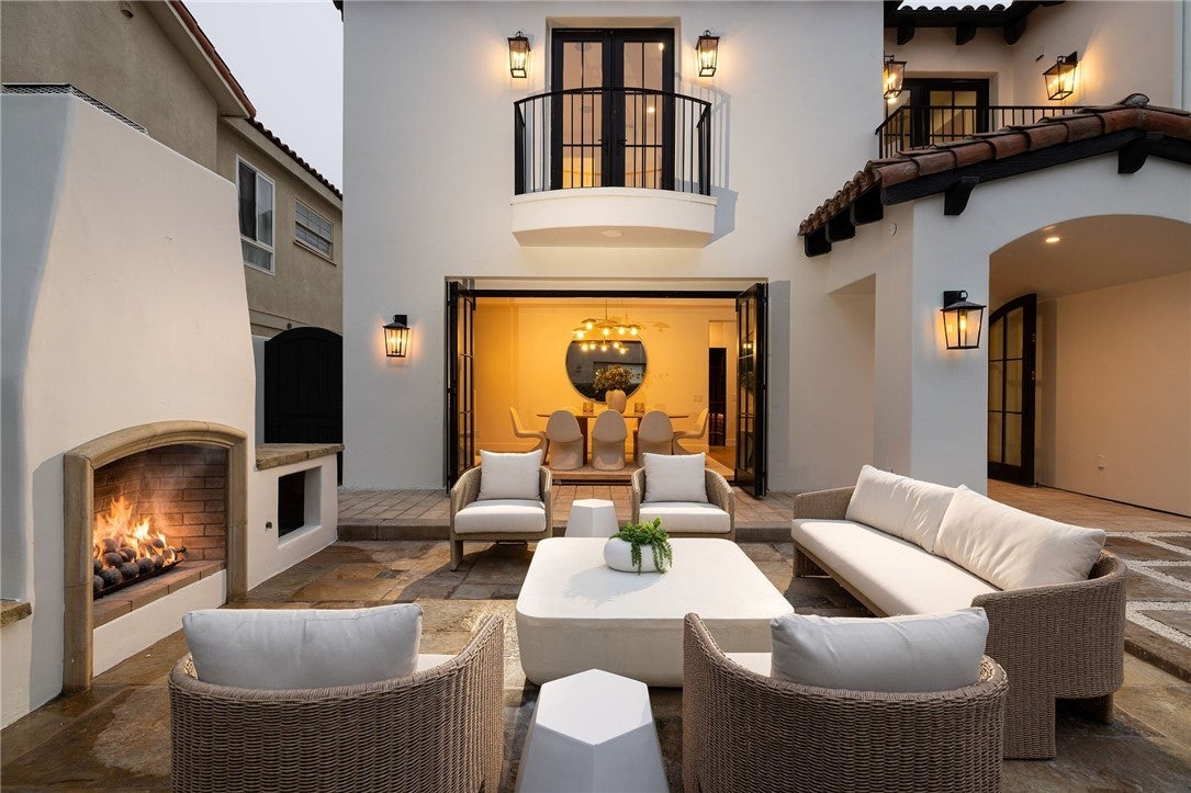 Located on the exclusive enclave of Lido Isle, this newly and completely renovated residence blends timeless traditional architecture with refined California coastal elegance. Sited on a highly sought-after oversized 58-foot-wide lot, the home offers six bedrooms, including a main-level en-suite, plus a dedicated office. Upon entry, a dramatic two-story foyer, seldom found on Lido Isle, sets the tone for the home’s thoughtful scale and architectural presence. The floorplan is ideally suited for both everyday living and sophisticated entertaining, anchored by a light-filled great room that flows seamlessly into the heart of the home. The gourmet kitchen is a chef’s showpiece, appointed with a Wolf 6-burner range with grill, 36" Sub-Zero separate refrigerator and freezer, Miele coffee bar, dual dishwashers, and custom finishes throughout. The kitchen opens seamlessly to the family room and outdoors through a dual bi-fold door system, creating an effortless indoor-outdoor living experience. The formal dining room features its own fireplace and additional bi-fold doors, complemented by a wet bar and an impressive 850-bottle, climate-controlled wine cellar, ideal for entertaining. Upstairs, the primary suite is a private retreat with beamed ceilings, a sitting room with Juliet balcony, and a spa-inspired bath with freestanding tub and walk-in shower. Four additional bedrooms complete the second level, two en-suite with custom built-ins and two sharing a Jack-and-Jill bath with dual vanities and a walk-in shower. Outdoor living offers multiple seating areas, a built-in stone fireplace, and a BBQ island, perfect for year-round coastal entertaining. Throughout the home, custom millwork, arched built-ins, and architectural symmetry highlight the exceptional craftsmanship. Extensive upgrades include all new windows, doors, plumbing, and end-user finishes, delivering the feel of a newly built residence.The home offers access to the unmatched Lido Isle lifestyle, featuring a private beach, yacht club, tennis and pickleball courts, water sports, and close proximity to Lido Marina Village and world-class beaches.