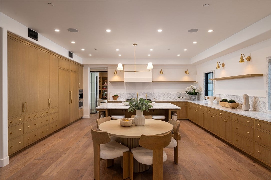 Beamed Ceilings, Wet Bar, Breakfast Bar, Built-in Features, Separate/Formal Dining Room, Eat-in Kitchen, High Ceilings, Recessed Lighting, Two Story Ceilings, Wired for Sound, Bedroom on Main Level, Jack and Jill Bath, Primary Suite, Wine Cellar, Walk-In Closet(s)