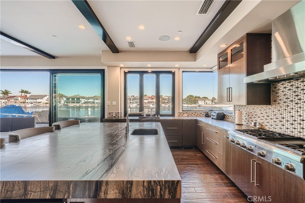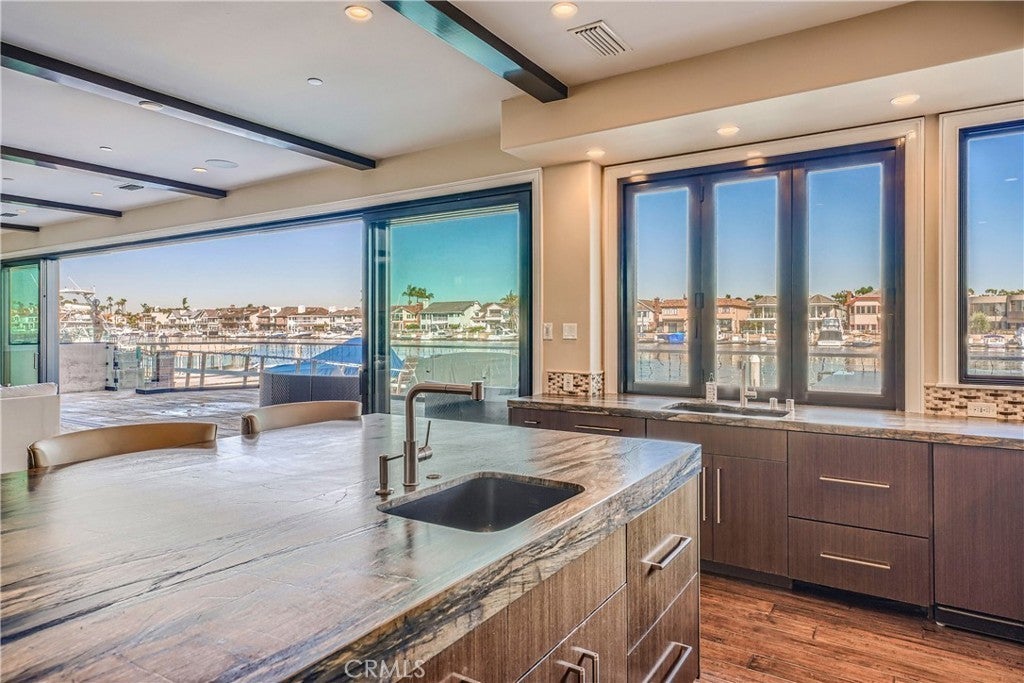 Rarely is it possible to find a Luxury Home of this quality, location, and design. Arguably one of the top 10 homes in the waterfront Huntington Harbour community. Custom Built & Main Channel Waterfront Home with dock for 65+ foot yacht PLUS a second large yacht or Duffy, skiff, and other watercraft. Located on exclusive Gilbert Island in Huntington Harbour... the private gated courtyard is the entry to a luxury waterfront lifestyle offered by this amazing custom home built in 2015. A raised foyer offers immediate water views and transitions to the formal dining area, step down living room, bar, and island kitchen with large walk-in pantry. The waterfront patio offers expansive views of Huntington Harbour with an entertaining array of activity to observe: paddle boarders, kayaks, and boats of various sizes and styles. Also downstairs is an office, powder room, bedroom with full bath (ideal for maid's quarters), plus oversize 3 car garage & storage/utility room. The primary bedroom upstairs is positively luxurious with views of the harbour, spacious master bath featuring walk-in shower, separate soaking tub, beverage center with microwave, and two walk-in dream closets with built-ins and islands. The VIP bedroom also features views of the harbour and has unique raised & open bath area with walk-in shower, separate tub, and large walk-in closet. Also upstairs is a hall bath & bedroom, walk-in laundry, and large game & home theater room with wet-bar & beverage center. There is an elevator and many other amenities for convenience. It will be offered mostly furnished. This is an emotional property which must be seen to appreciate. Overall, arguably one of the top 10 homes in Huntington Harbour given the enviable mix of view, location, architecture, quality, living area, and wharfage. Oh by the way... there is a "walk-thru" 3D tour, please look for the link in whatever search system you are using to view this listing!