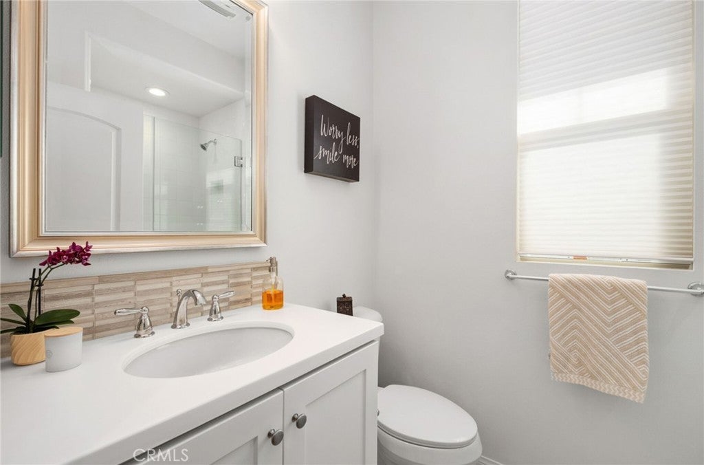 Welcome to the elevated 55+ resort-style community in Rancho Mission Viejo. This immaculate home has 3 Bedrooms and 3 full baths in just over 1,760 square feet. The entry flows right into the open kitchen with a large center island featuring quartz counters and stainless appliances. The 5 burner cooktop is framed with an elegant backsplash and under cabinet lighting. The large Primary is on the main level and includes a spa-like bath with a zero clearance shower with bench seating. The 2nd main floor bedroom is adjacent to a full bath. This makes for a great guest room or office. The laundry room is on the main level for ease of use and has beautiful upper and lower cabinetry and a nice quartz counter for work space. Upstairs is an additional Bedroom with a spacious loft area that can be used for games, movie nights or a private getaway for guests. The upstairs loft also features another full bath. The community of Gavlan at Rancho Mission Viejo is resort like with access directly above the property to Hilltop pool and social areas and also the Lookout pool and BBQ area. As part of the Gavlan over 55+ community, you will have access to all the beautiful pools, fitness centers, social clubs and events that make being a part of this community a very sought after feature.