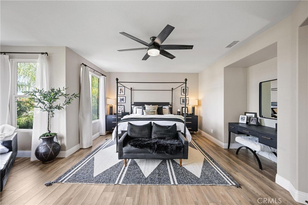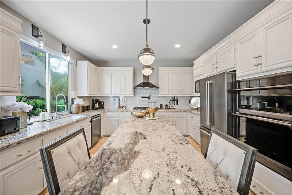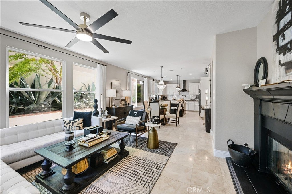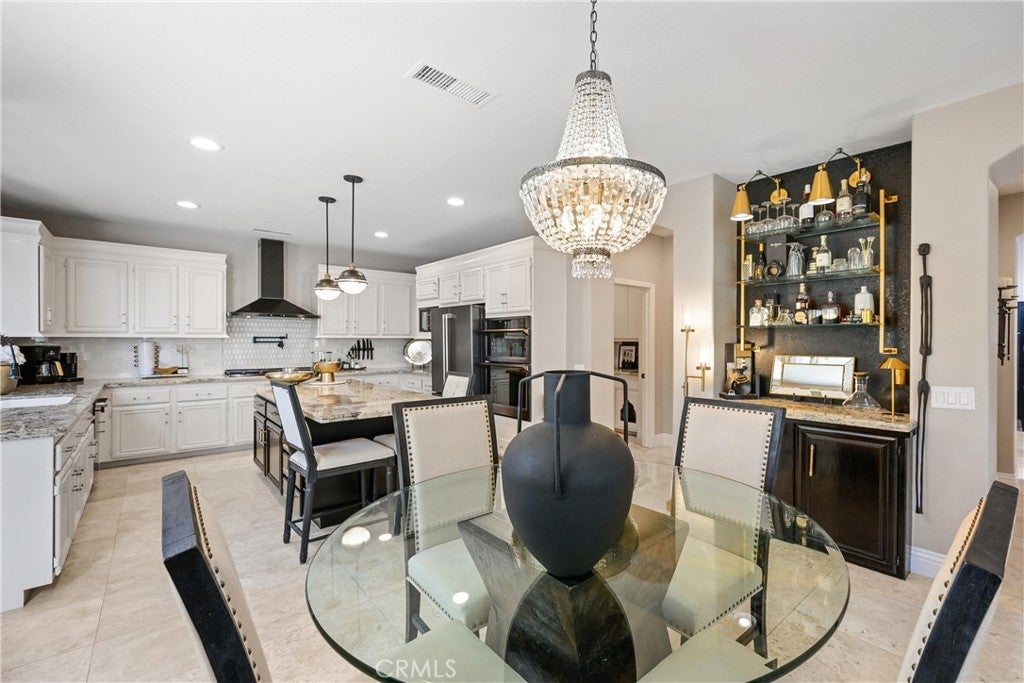 Welcome to 32986 Anasazi Drive, a refined contemporary home offering 4 bedrooms, a casita, spacious loft, flex space, and approx 3,428 square feet of thoughtfully designed living space. Privately situated on a cul-de-sac in the highly regarded Redhawk golf community, this impeccably updated, interior designer–curated home offers elevated finishes, a highly versatile floor plan, and serene views with no rear neighbors. A gated portico courtyard and custom wrought iron entry open to a grand foyer highlighted by a dramatic flared staircase and expansive living and dining spaces framed by wall-to-wall windows. The kitchen is designed for both form and function, featuring white cabinetry with crown molding, granite countertops, marble backsplash, an extended island, a walk-in pantry, newer appliances, a pot filler, a deep sink, and a custom-built-in bar with a refrigerator. The flexible layout includes a private-entry casita and a downstairs bedroom. Upstairs, the luxurious primary retreat offers a sitting area, separate vanity space, spa-inspired bath with a frameless marble shower, dual vanities, soaking tub, and an oversized walk-in closet with custom organizers. A generous loft presents the opportunity for a fifth bedroom, complemented by an additional flex space ideal for a study or reading area. The outdoor living space is framed by lush mature landscaping, creating a tranquil garden setting complemented by clean-lined concrete stepping stones, decorative river-rock hardscaping, a built-in Lion BBQ, and new vinyl fencing. Designed for entertaining and relaxation, the space blends natural beauty with modern, low-maintenance sophistication in a serene, private setting. Additional highlights include zoned HVAC, whole-house fan, water softener, automated kitchen blinds, designer lighting, and LVP water-resistant flooring upstairs. Just minutes from top-rated schools, Redhawk Golf Course, Old Town Temecula, Pechanga Resort, and renowned wineries, this exceptional home delivers privacy, elegance, and a lifestyle designed to be enjoyed.