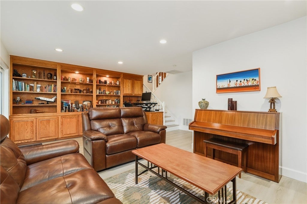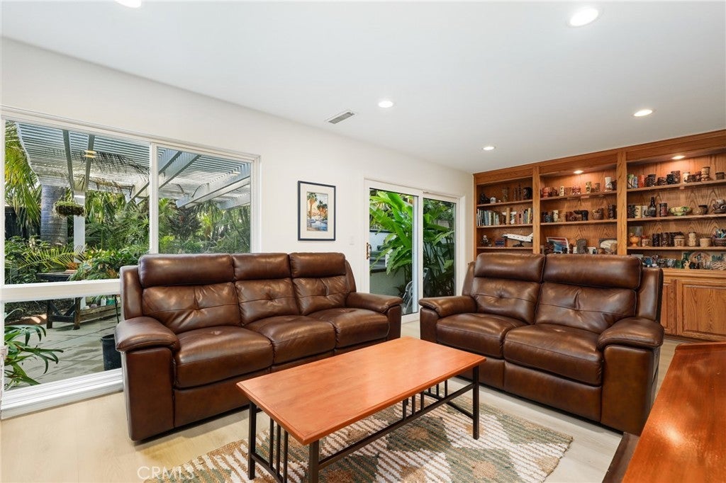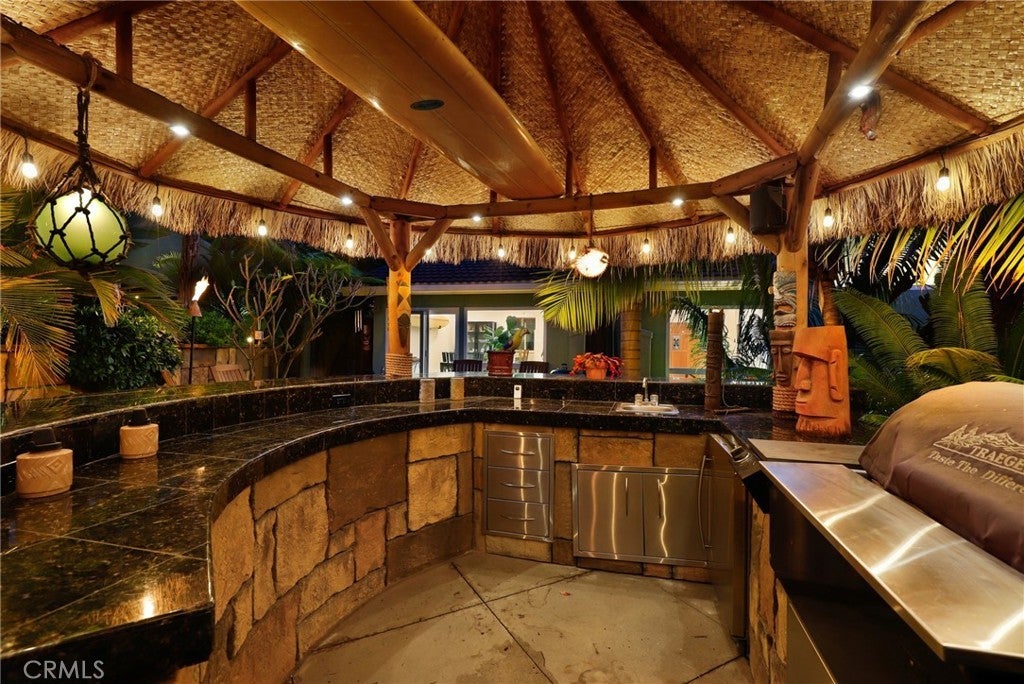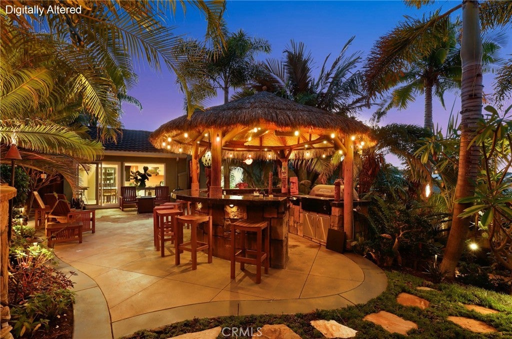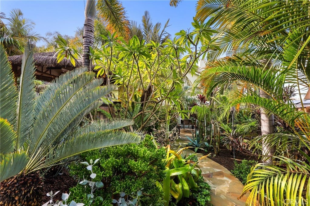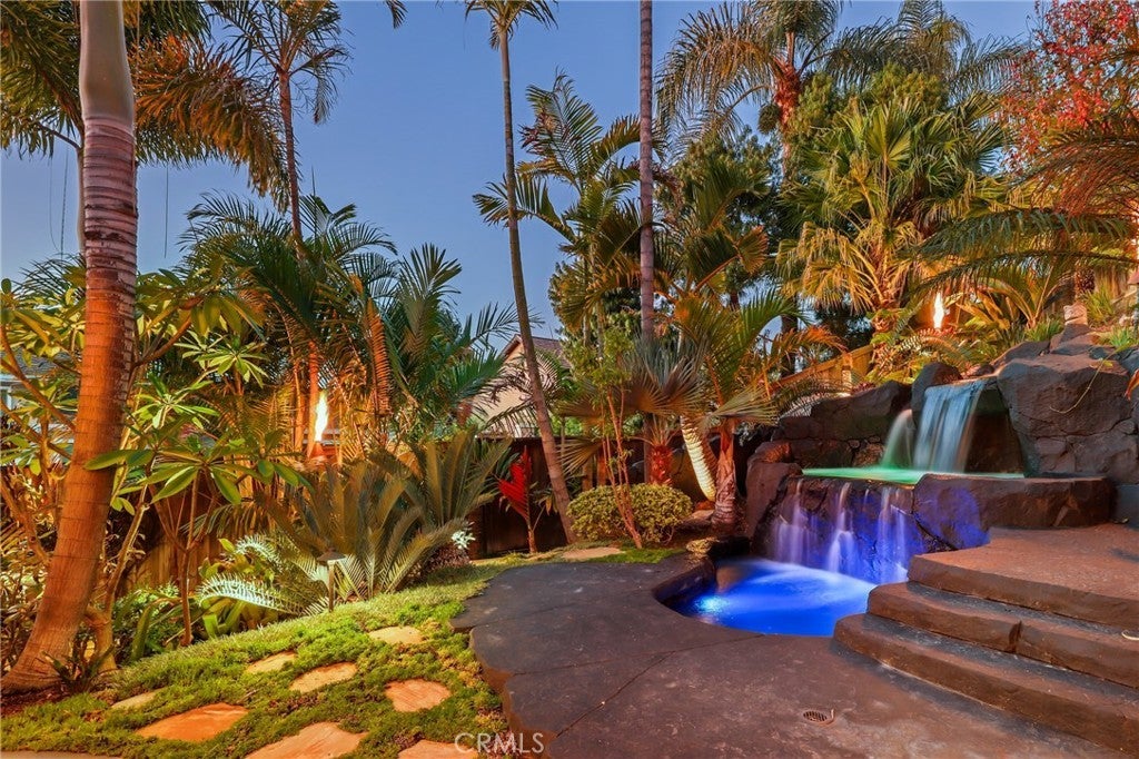 Welcome to 25822 Chrisanta Dr., a tropical oasis in the heart of Mission Viejo, this lovingly cared-for tri-level home has been cherished by the same owners for over 25 years and is now ready for its next chapter! Nestled in the highly desirable La Paz neighborhood, this San Lorenzo floor plan features vaulted ceilings in the main living area, updated vinyl flooring, dual pane windows, and an inviting layout awash in natural light. Step outside, and you’ll discover a breathtaking backyard that truly embodies paradise. Surrounded by lush landscaping and over a hundred varieties of palm trees, the vibrant outdoor space includes a spacious patio, a captivating custom-designed grotto with a waterfall that gracefully flows into a refreshing plunge pool/spa. The built-in Palapa Tiki Wet-Bar with BBQ and wrap-around covered seating is a perfect highlight for entertaining friends and family, offering an ideal setting to unwind and soak up the Southern California sun. Inside, the converted fourth bedroom serves as a cozy den, complete with a charming brick fireplace and custom oak built-ins — perfect for an office, library, or media room. Two secondary bedrooms, each with access to a balcony, are located upstairs along with the primary suite and a hallway bathroom to round out the living quarters. With neutral tones throughout and a seamless indoor-outdoor flow, this home elegantly combines comfort, character, and location. No HOA fees, low tax rate and located in one of Mission Viejo’s most sought-after communities, residents enjoy private access to Lake Mission Viejo, tree-lined streets, award-winning schools, and close proximity to golf courses, parks, shopping, and dining options. This home offers the perfect blend of community charm and modern convenience, ready to create new memories for its next owners!