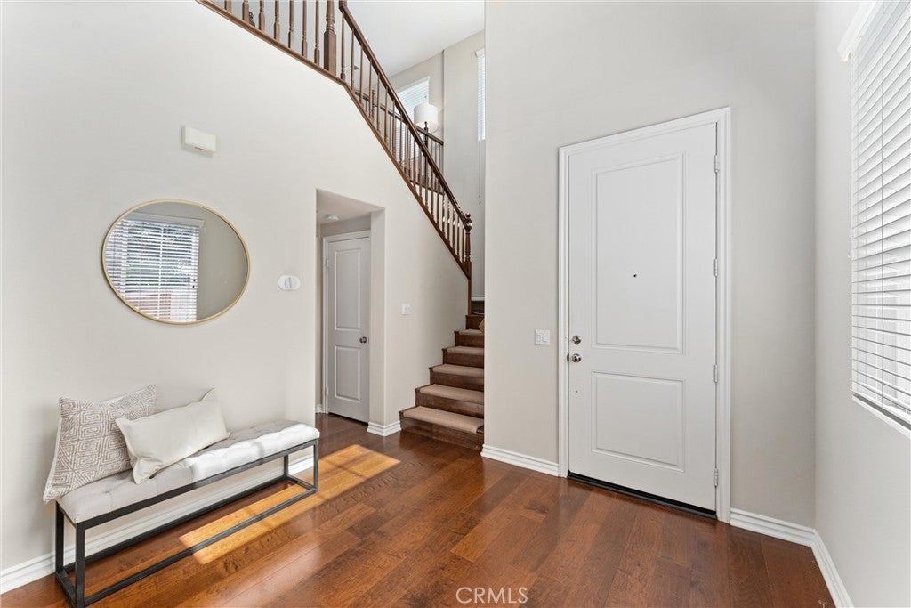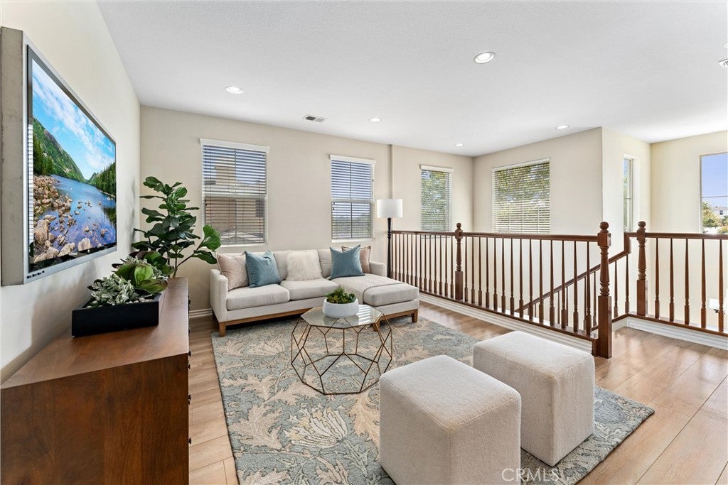 Welcome to 3229 Larkspur Street — where everyday living feels elevated. Nestled in the highly desirable Columbus Grove community, this beautifully upgraded 4 Bedroom + Loft, 3 Bathroom home offers 2,416 sq.ft. of bright, open living space designed for comfort and ease. Step inside to a dramatic two-story foyer that leads into a spacious Great Room featuring a cozy fireplace and media niche, ideal for gatherings both large and small. The chef’s kitchen is as stylish as it is functional, showcasing granite countertops, stainless steel appliances, an oversized center island, and a generous walk-in pantry. Just beyond, the adjacent patio creates a seamless indoor-outdoor connection—perfect for entertaining. The main level includes a full bedroom and bathroom with a walk-in closet, offering flexibility for guests, multigenerational living, or a private home office. Upstairs, the versatile loft provides an ideal bonus space, whether for a child's playroom, gym, workspace, or second living area. Two secondary bedrooms share a well-appointed bath with dual vanities, while the primary suite serves as a true retreat with dual closets, a soaking tub, and a separate walk-in shower. Outside, unwind in your private backyard sanctuary with no neighbors behind you, complete with a gas-plumbed fire pit and sleek hardscaping for easy entertaining or quiet evenings. An additional plus, this home excludes carpeted areas, with hardwood flooring downstairs, luxury vinyl plank upstairs, and tile in all bathrooms. Columbus Grove offers more than just a home—enjoy low HOA dues, top-rated Irvine schools, and resort-style amenities including a junior Olympic pool, spas, parks, tot lot, sport courts, and year-round community events. With quick access to John Wayne Airport, the 5 & 405 freeways, Newport Beach, and premier shopping and dining at The District, The Market Place, and South Coast Plaza, you’re truly at the center of it all.