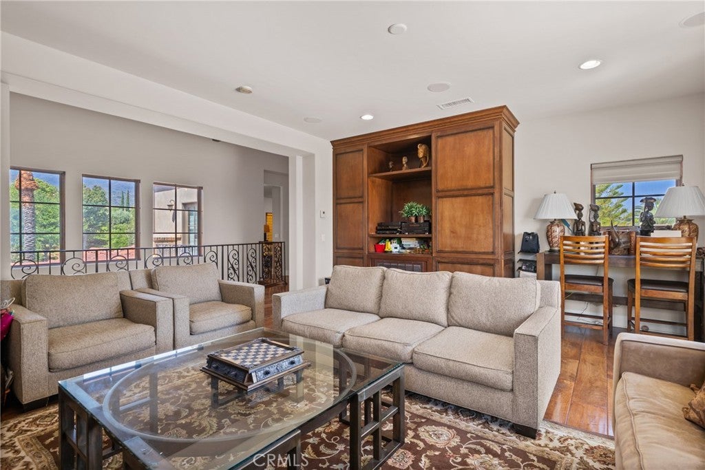 MUST SEE PHENOMENAL SOUTH CORONA PRIVATE ESTATE - Arguably one of the finest custom estates currently available in South Corona, this exceptional residence offers commanding curb appeal and is set on 1.38 private acres behind mature, lush landscaping. Spanning approximately 5,900 square feet, the home showcases highly luxurious finishes and refined architectural detailing throughout. The thoughtfully designed floor plan features a main-level primary suite, guest bedroom, and private office, providing ideal functionality for executive living and long-term comfort. Upstairs living areas complement the home’s expansive layout, while grand interiors and abundant natural light create an atmosphere of understated elegance. The resort-style backyard is designed for elevated entertaining, offering ample space to host large-scale events in a private, serene setting. A rare custom men’s and women’s bathroom setup with individual stalls and showers further enhances the property’s entertaining capabilities.Automotive and storage needs are well accommodated with a three-car attached garage plus a separate detached two-car garage. The home also includes a fully paid-off $200,000 solar system, offering long-term efficiency and value. Opportunities of this caliber — combining privacy, scale, luxury, and functionality — are exceedingly rare in South Corona. The seller is motivated, the property is competitively priced, and qualified buyers are encouraged to act quickly to secure this premier offering.