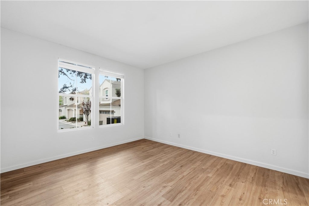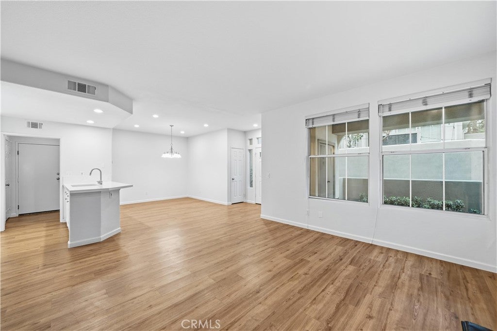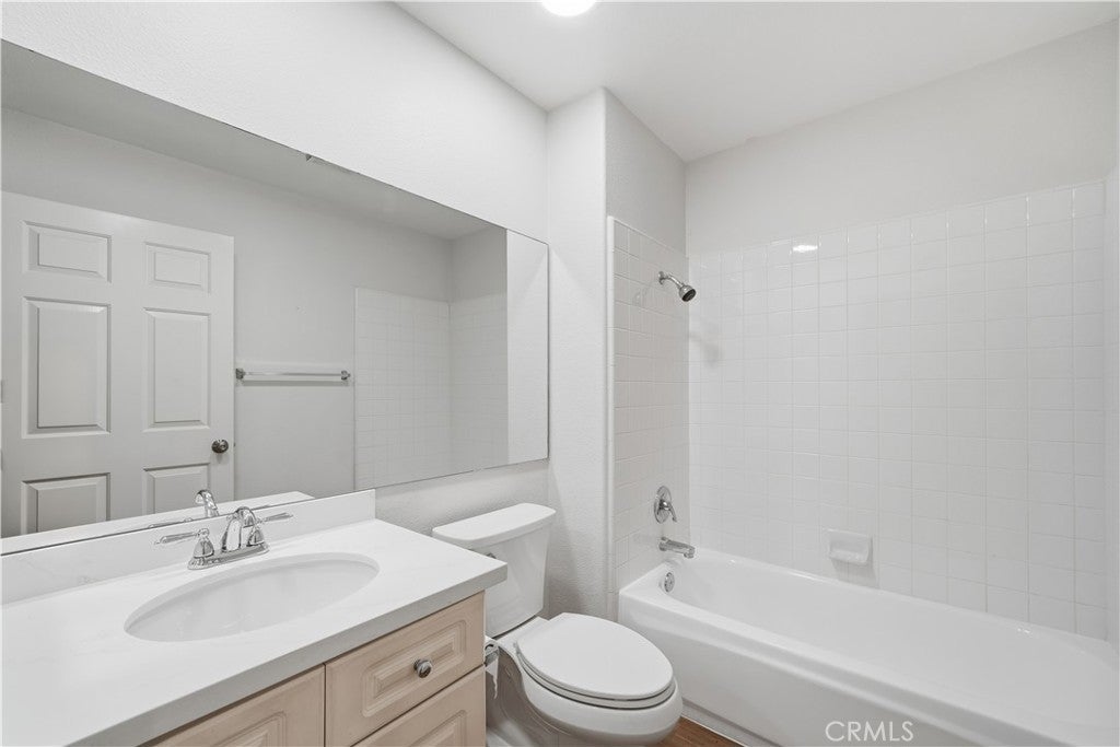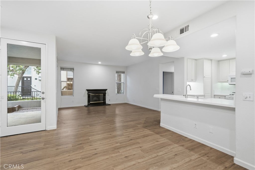 Welcome to this beautifully updated and light-filled end unit in the desirable La Mirage community. Featuring an open, bright floorplan, this turnkey home showcases updated luxury vinyl laminate flooring throughout, recessed lighting in all main living areas, and window blinds with mirrored closet doors for a clean, cohesive finish. Community-wide PEX repiping has been completed. The inviting living and dining spaces flow seamlessly into the updated kitchen, complete with brand-new quartz countertops, modern fixtures, and a large sink that blend style and functionality. Just off the main living area, a large, tranquil covered patio extends the living space outdoors, surprisingly private for the community and ideal for relaxing, unwinding, or entertaining.. Both bathrooms have been thoughtfully updated. The hall bath features a new quartz countertop, recessed lighting, a large mirror, and updated fixtures. The spacious primary suite offers recessed lighting, a generous walk-in closet, and an updated vanity with dual sinks, quartz countertop, modern fixtures, a large mirror, and a separate water closet for added privacy. As an end unit, this home enjoys extra privacy and a more open, spacious feel compared to interior units, with plenty of guest parking just steps from the front door. Residents of La Mirage enjoy resort-style amenities including a pool, spa, BBQ areas, lighted tennis court, and clubhouse, with trash service included. Ideally located near award-winning schools, the peaceful and picturesque Soka University campus, scenic hiking and biking trails, and the shopping, dining, and entertainment of Aliso Viejo Town Center, this home offers comfortable, low-maintenance living in a well-located and desirable Aliso Viejo community.
