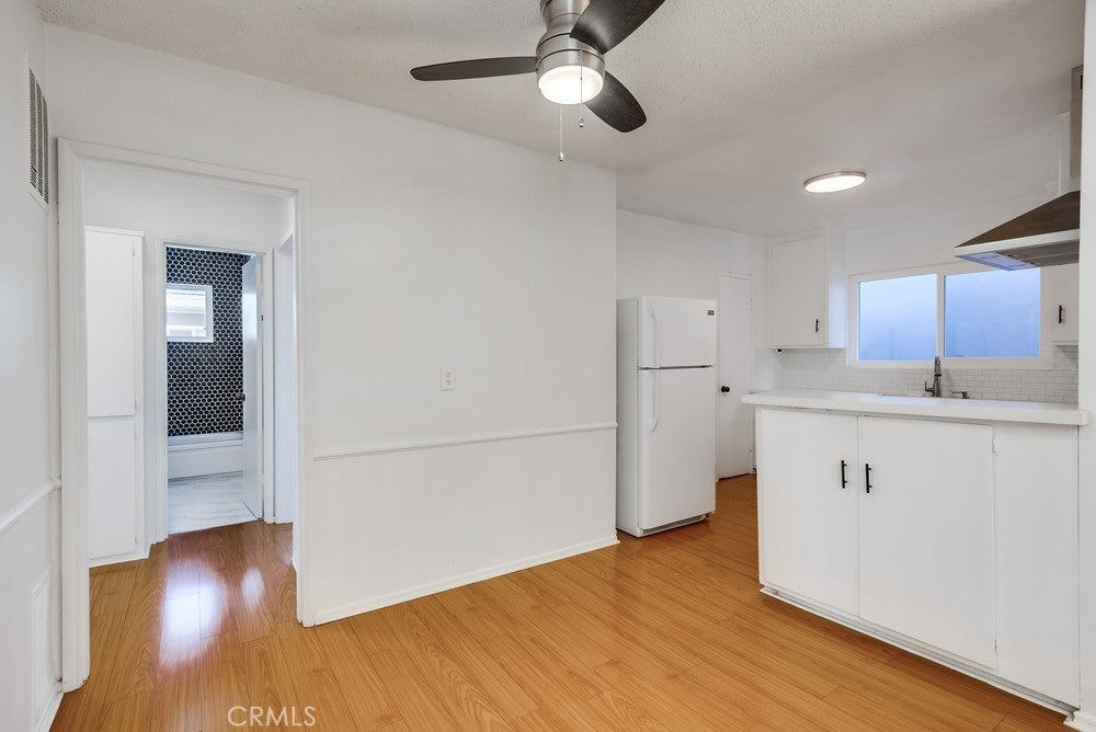 Recently remodeled mid-century 2-bedroom, 2-bath apartment available for immediate move-in. Located in the back of a quiet building in prime WeHo, nestled between Melrose and Santa Monica Blvd, this unit features a large living and dining room with real hardwood floors. The kitchen has been recently renovated and comes with a refrigerator and pantry. Both bathrooms have also been updated. The primary bedroom has an ensuite bathroom. Highlights include new windows, A/C, and ceiling fans, among others. The building has a laundry room and a secure garage. Includes water, trash, and one assigned spot in the garage with additional storage. Small pets are considered with additional rent.