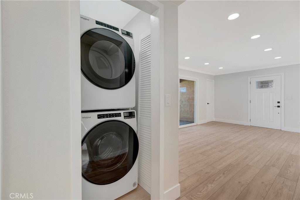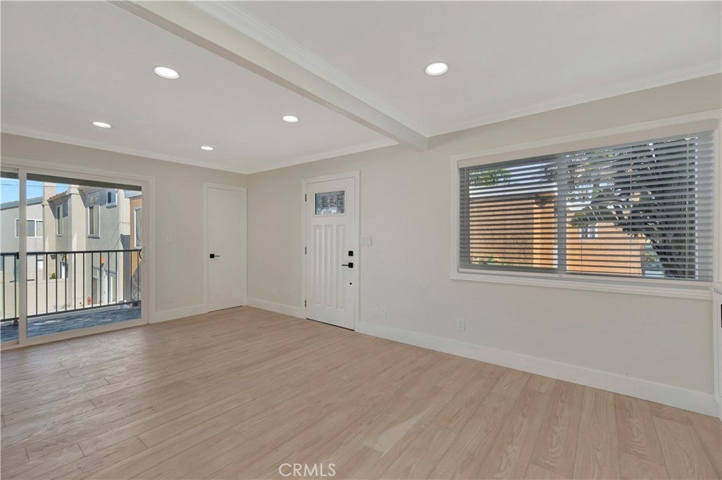 This stunningly remodeled home, located just steps from the ocean in Downtown Huntington Beach, features two bedrooms and two bathrooms and a 2 car garage. The property showcases numerous upgrades, including recessed lighting, luxury hard surface flooring, custom paint, and a new mini-split air conditioning system. The living room is highlighted by new vinyl flooring and a sliding glass door that opens to a charming deck. The gourmet kitchen is adorned with exquisite quartz countertops, new shaker cabinets, stainless steel appliances, and ample storage that seamlessly extends into the dining area. The primary suite boasts dual mirrored closets and a beautifully remodeled en-suite bathroom, complete with new cabinetry, quartz counters, and a walk-in shower. The generously sized secondary bedroom is conveniently located near a remodeled full bathroom. A large linen closet is situated next to the stacked washer and dryer. Additionally, the coveted two-car garage features brand new epoxy flooring and abundant storage shelves. This home is ideally positioned just steps away from the beach, downtown Huntington Beach, Pacific City, the scenic trails at Bolsa Chica Wetlands, as well as shopping, dining, splendid parks, award winning schools and much more!