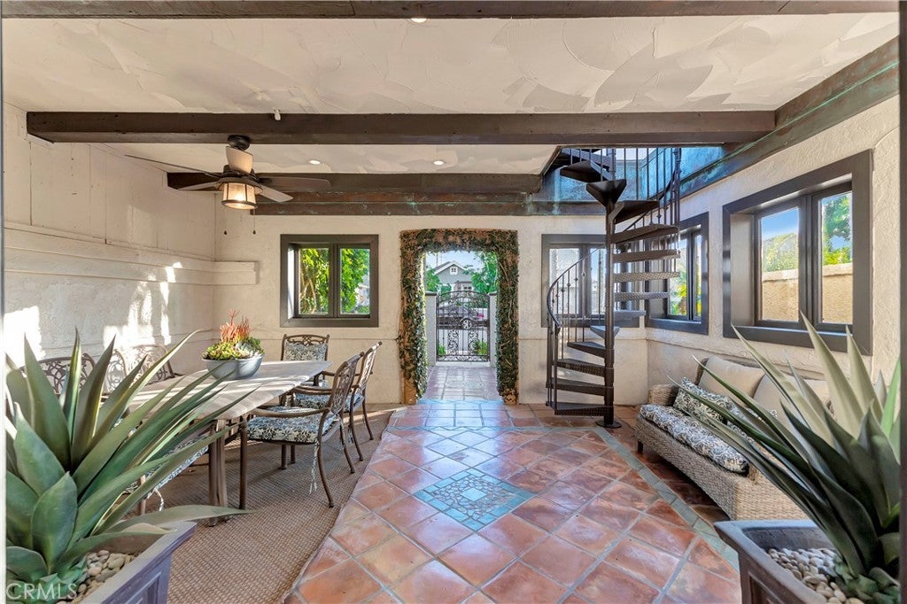 Just minutes from Downtown Huntington Beach, the iconic pier, Pacific City, and the ocean, this stunning Spanish-style single-family home offers the perfect blend of coastal location and timeless design. Spanning nearly 2,600 square feet, the residence showcases beautiful Spanish tile flooring throughout the main level, intricate wood and iron detailing, and a charming ivy-covered exterior with a covered front patio/California room ideal for entertaining. Double entry doors welcome you into a formal living room with a cozy fireplace, flowing seamlessly into the family room, dining room with built-in cabinetry, and a thoughtfully designed kitchen. The kitchen features stainless steel appliances, granite countertops, a breakfast bar, and a breakfast nook, with direct access to the attached two-car garage. Upstairs, you’ll find three spacious en-suite bedrooms finished with stylish hard-surface flooring. The primary suite is a true retreat, offering dual vanities, a soaking tub, walk-in shower, and a generous walk-in closet. Both secondary bedrooms include their own private bathrooms, with one featuring a large deck and spiral staircase leading down to the front covered patio. The third level reveals an expansive rooftop deck, perfect for relaxing or entertaining under the coastal sky. Recent upgrades include a new roof, new central A/C and split system, tankless water heater, and fresh interior paint. This exceptional home combines classic Spanish charm with modern comfort in one of Huntington Beach’s most desirable locations.