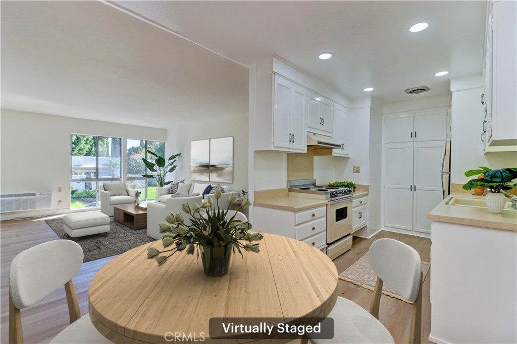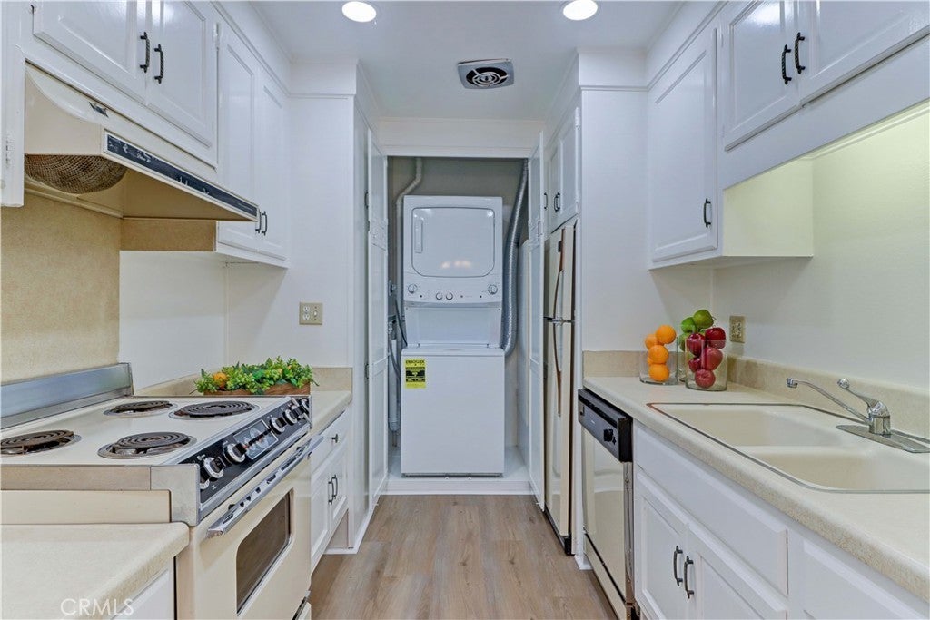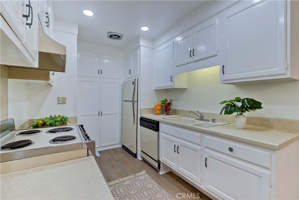 2BD/1BA "Monterey" co-op, this great property has no stairs to entry, no one above or below (only carports below) BUT has an elevated feel. Convenient location between Gate 5/6 for easy access to freeway and shopping. Brand new upgrades include: luxury vinyl plank flooring, fresh paint and baseboards, stack washer/dryer and heat pump in the living room. Partially covered front patio has gate for privacy or to keep your pet contained and large storage closet. Inside there are generously sized windows in the spacious living and bedrooms, smooth ceilings and HOA maintained kitchen that should be due for some upgrades. Kitchen enhancements include LED recessed lights and brand new stack/washer dryer in the closet. Bedrooms are privately located on opposite ends of the property and the bathroom has original HOA-maintained components with tub/shower combo. This gate houses Clubhouse 4 - the arts and craft center of Laguna Woods with workrooms for pottery, jewelry making, sewing, stained glass, rock tumbling, woodshop, photography and fine arts. Lap pool with hot tub, bathrooms and lockers. Free classes available though Saddleback College Emeritus Institute. Residents enjoy a 27-hole championship golf course, a 9-hole executive par 3 course, pickleball and tennis courts, lawn bowling, gyms, clubhouses, swimming pools, horse stables, gardening centers, artist studios, computer workrooms and classes + over 200 clubs and organizations.