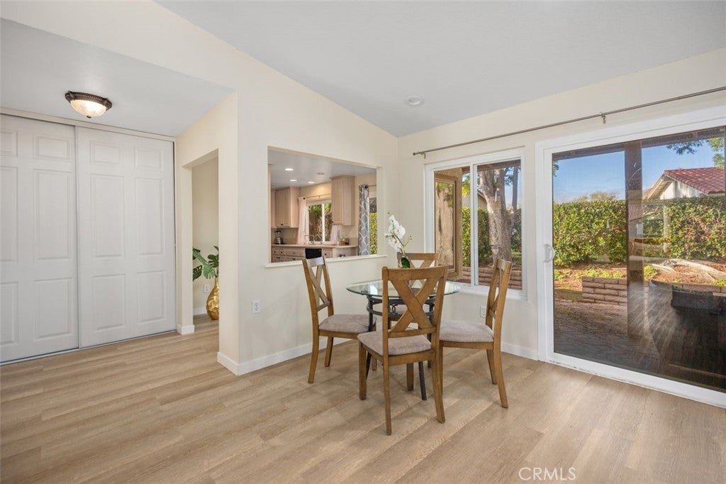 Charming single-level home located in the highly desirable 55+ community of Casta del Sol. This light-filled residence features a spacious living and dining area with vaulted ceilings and a cozy fireplace, a well-appointed kitchen with breakfast nook, and direct access to the garage. The functional floor plan offers a generously sized primary bedroom along with a comfortable secondary bedroom. Enjoy a private patio ideal for relaxing or entertaining. Recent upgrades include newer flooring, baseboards, windows, and a sliding glass door. Casta del Sol offers resort-style living with beautifully landscaped grounds, multiple pools, tennis and pickleball courts, clubhouses, fitness centers, a community garden, bocce ball, and a wide variety of social clubs and activities. The HOA also covers exterior paint, trash service, and expansive greenbelt maintenance—providing a truly low-maintenance lifestyle with exceptional amenities.