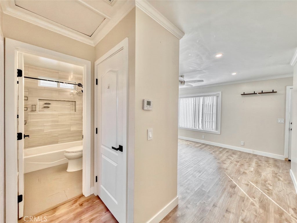 Welcome to 19837 Margate Ln, a charming single-story one-bedroom home located in the desirable Huntington Bay Community. Paid Solar System!! Situated as an end unit, this home offers a peaceful and tucked-away setting within the neighborhood. Step outside onto your own private patio with convenient access to a covered carport, making coming and going a breeze. There is also one additional unassigned parking space. Inside, you'll find the convenience of an in-unit washer and dryer in the kitchen area, making daily chores a breeze. The home boasts beautiful laminate wood flooring throughout, adding a touch of elegance to the space. The chef's kitchen is a dream for those who love to cook, and central air ensures year-round comfort. The Huntington Bay Community features lush greenbelts throughout, a community pool for relaxation, a clubhouse for gatherings, and a BBQ area for outdoor entertaining. An almost new washer and dryer will be included upon close of escrow - they are currenly in storage Don't miss the opportunity to make this delightful home yours!