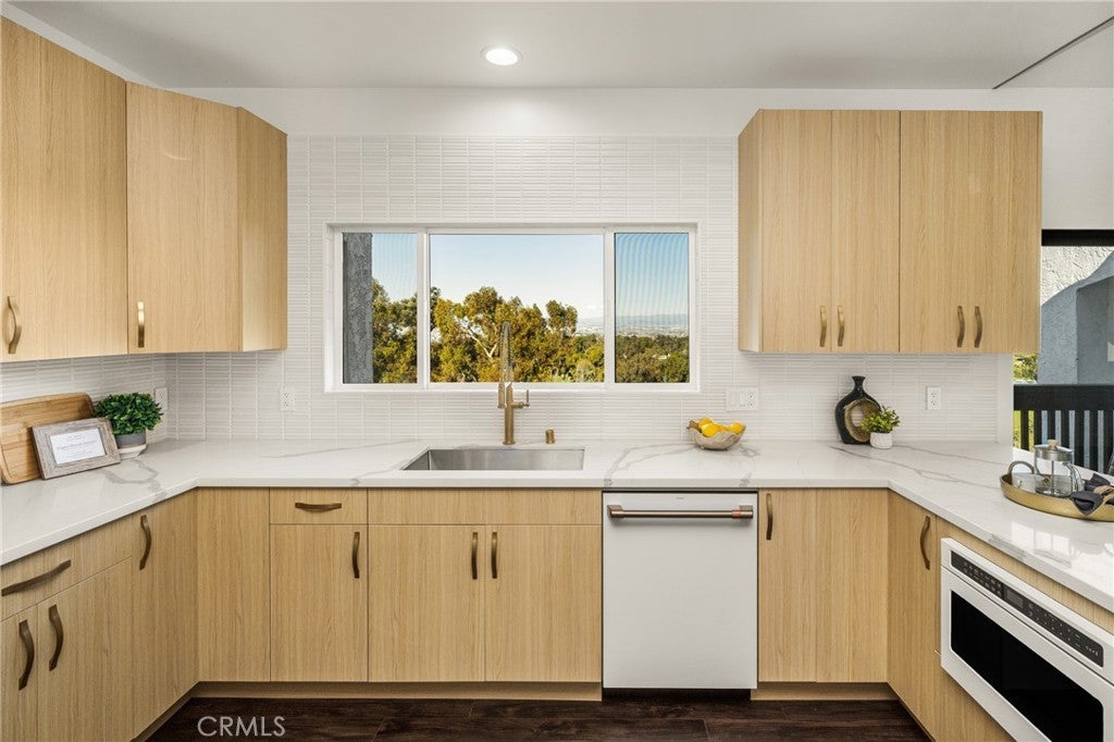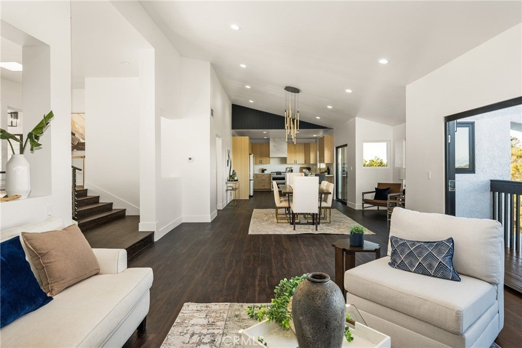 Tucked away on a quiet cul-de-sac and directly across from the prestigious Palos Verdes Golf Club, this beautifully updated home sits on an expansive 20,000+ square foot lot and offers commanding views of both the golf course and the Pacific Ocean from six private balconies. Bordering Malaga Cove / Palos Verdes Estates, the home boasts nearly 3,900 square feet of living space. The property features a reverse floorplan that places the main living areas and primary suite on the upper level, perfect for enjoying the sweeping views, while the majority of the bedrooms are privately tucked below. Both levels offer a light filled layout with brand new LaCantina win-doors and windows that bring the outdoors in. The spacious living room, formal dining area, and open kitchen flow effortlessly to expansive view decks, ideal for entertaining. The kitchen is equipped with matte white Café appliances that combine high end design with professional grade performance. The upstairs primary suite features a fireplace, walk-in closet, and its own private balcony. A guest powder room completes the upper level Downstairs, the home includes a second primary suite, ideal for guests or multigenerational living, plus two additional bedrooms that share a full bathroom. A large family and game room with a fireplace and built-in bar anchors the lower level, along with a dedicated laundry room and generous storage space perfect for a wine cellar or additional use. This home has been extensively upgraded throughout, including all new PEX plumbing, complete electrical rewiring, dual zone HVAC with two new heaters, two air conditioning units, all new ducting, and designer air registers. A tankless gas water heater, new Toto bidet toilets, Brizo plumbing fixtures, and a Generac backup generator add comfort and convenience throughout. All renovations and upgrades were completed with proper city permits and approvals, ensuring quality, safety, and long term peace of mind. The finished three car garage features vaulted ceilings, recessed lighting, and space for a car lift, while the wide driveway provides ample additional parking. The landscaped backyard includes mature fruit trees and space for a future garden or retreat. With thoughtful updates, panoramic views, and a prime location, 5 Yellow Brick Road offers a rare opportunity to enjoy refined coastal living with comfort, style, and room to grow.