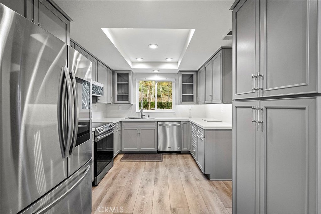 Yes I’m gorgeous! Totally Remodeled!! Prestigious East Nine Community located in Salt Creek Area of Laguna Niguel. Single level condo overlooking El Niguel Golf Course. Amazing describes this aesthetically appointed home. Prime location with panoramic views of El Niguel Golf Course, lake , trees & greenbelt ~ sophistication and dramatic flair characterizes this beautiful condo. Nestled in the East Nine Community this stunning inspired upstairs end unit condominium boasts 3 bedrooms ~ 2 bath melding an open and bright living environment. Smart kitchen including Samsung Smart stainless steel appliances, under cabinet lighting, soft close kitchen drawers, farm sink and large pantry. … a chefs delight. Attention to every detail here, including wide plant modern flooring, custom walk-in closet in primary bedroom with Italian leather soft close drawers, barn doors, extra large primary shower, custom blinds and drapes and remodeled bathrooms with bluetooth speakers. Style is displayed throughout the interior with warm harmonizing colors.Expansive flowing floor plan ~ abundance of natural light boasting vaulted ceilings and skylights….Dimmable lights throughout entire home. Sony TVs in living and second bedroom. Smart lock entry & ring camera. Rain or shine , entertain or relax and embrace the gorgeous views from oversized deck area. Laundry closet is located off deck with new washer & dryer. Steps away… a huge two car detached garage. Enjoy the sophisticated life style of the famed El Niguel Golf Course -think what a beautiful treasure it is to live and breath happiness. Homeowners enjoy a resort lifestyle with community amenities include, sparkling community pool & spa, BBQ & picnic area, trash, sewer, water, and grounds maintenance. Close proximity to El Niguel Country Club, Salt Creek Beach, bike trails, tennis courts, Waldorf Astoria Monarch Beach Resort, Ritz Carlton,Dana Point Harbor, Laguna Beach and shopping. Easy access to freeway & toll road. Enjoy the vibrant upscale vibe of the East NIne, with a sunny upbeat character sure to please. Rent includes water & trash.