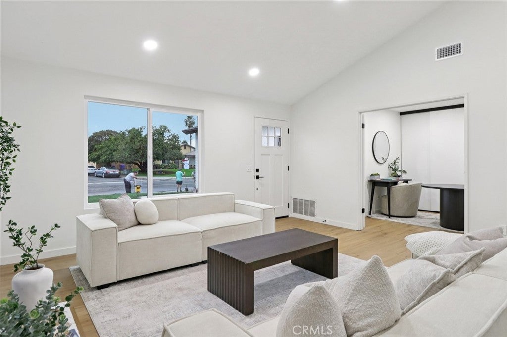 This fully renovated single story home offers 4 bedrooms and 2 bathrooms, blending modern design with extensive system upgrades for true move in readiness. The renovation goes well beyond cosmetic updates, featuring an updated kitchen and bathrooms, new flooring, recessed lighting, smooth ceilings, fresh interior paint, and a refreshed fireplace and front door. Major improvements include updated windows and sliding doors, a new HVAC system, and a full plumbing repipe, delivering long term reliability and peace of mind. Exterior enhancements include fresh paint, improved landscaping, and a modern garage door, while the private backyard with no rear neighbors provides a rare sense of seclusion. A smart irrigation system adjusts watering based on weather conditions, supporting efficient landscape maintenance. Ideally located near shopping, dining, schools, and commuter routes, this turnkey home is designed for comfortable, low maintenance living.