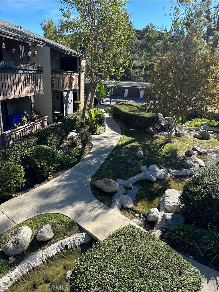 Beautiful Upper Level End Unit Condo! This spacious 2 bedroom, 2 bath condo features a 1 car garage, an additional assigned parking space, and upgrades throughout. The open floor plan offers a bright living room with vaulted ceilings and a dining area with recessed lighting. The remodeled kitchen includes upgraded appliances, hardware, and lighting. Enjoy upgraded laminate flooring throughout with ceramic tile in the kitchen and baths. Both bathrooms have been beautifully remodeled with upgraded vanities, mirrors, shower doors, faucets, and fixtures. Additional highlights include custom paint, scraped ceilings, upgraded baseboards, new interior and closet doors, and ceiling fans in both bedrooms. Relax on the large balcony overlooking peaceful streams and lush greenery. The laundry closet on the patio offers extra storage space. The community offers resort-style amenities including 3 pools, 3 spas, tennis and basketball courts, and scenic walking paths with ponds and running streams. HOA covers water, trash, and exterior maintenance. Conveniently located near schools, parks, shopping, Saddleback Church, Irvine Spectrum, walking/biking trails, and Sports Park. Washer, dryer, and refrigerator are included!This won't last!