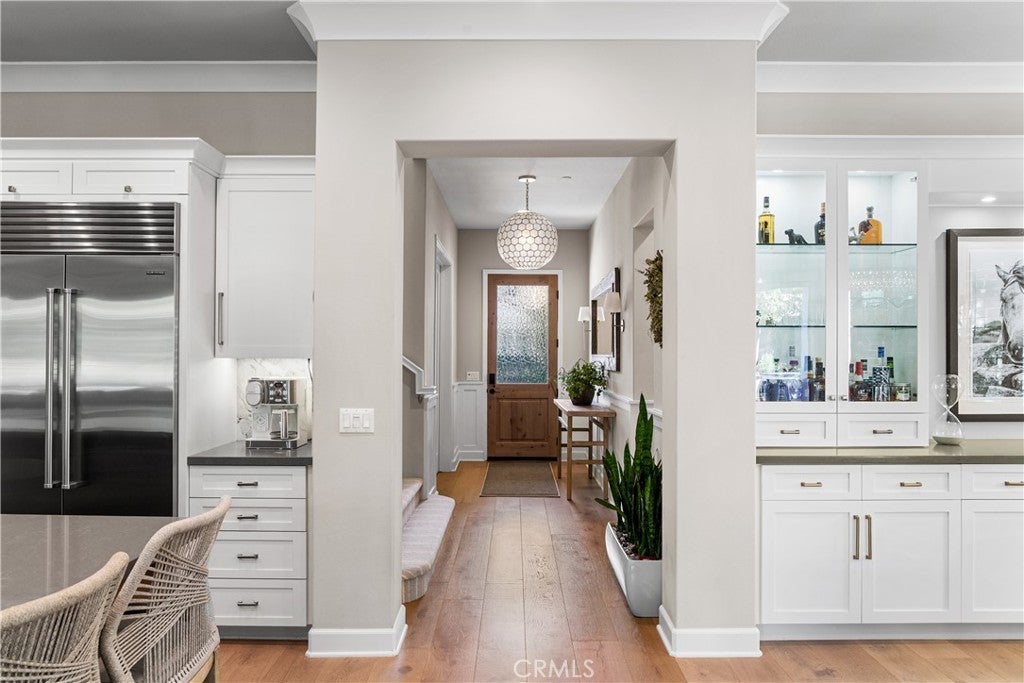 Breakfast Bar, Separate/Formal Dining Room, Eat-in Kitchen, High Ceilings, Open Floorplan, Pantry, Quartz Counters, Bedroom on Main Level, Main Level Primary, Walk-In Pantry, Walk-In Closet(s), Crown Molding, Galley Kitchen, Paneling/Wainscoting, Wood Product Walls