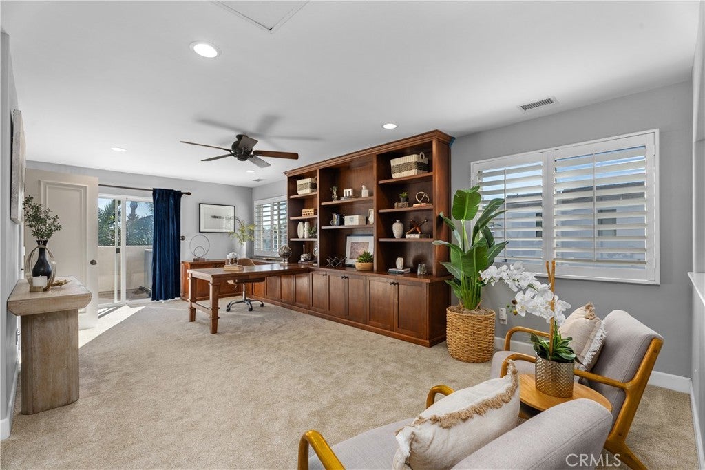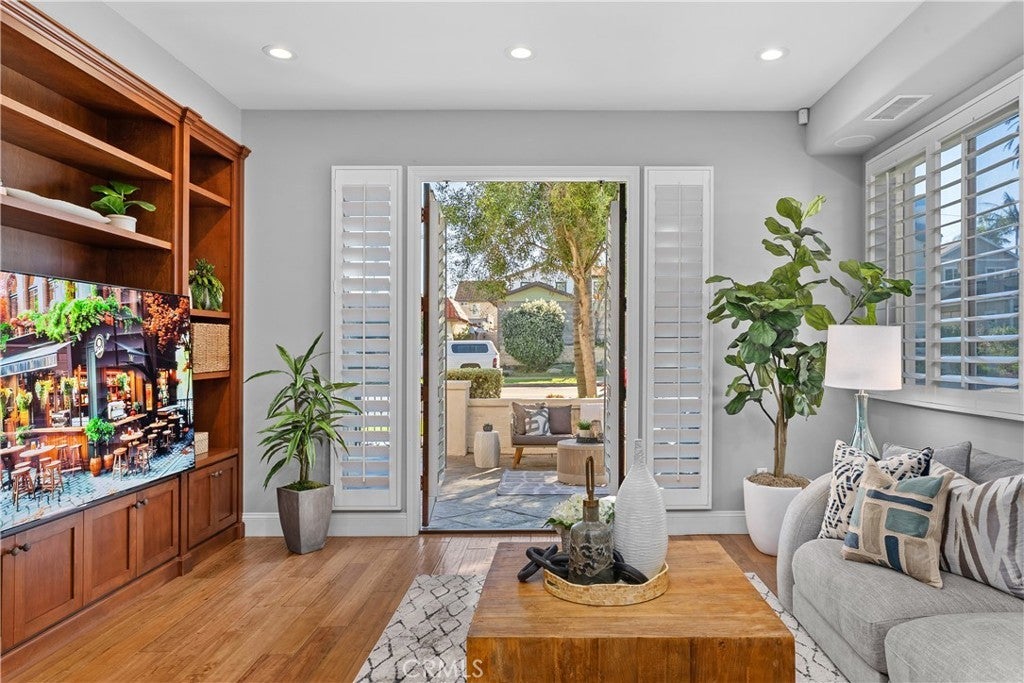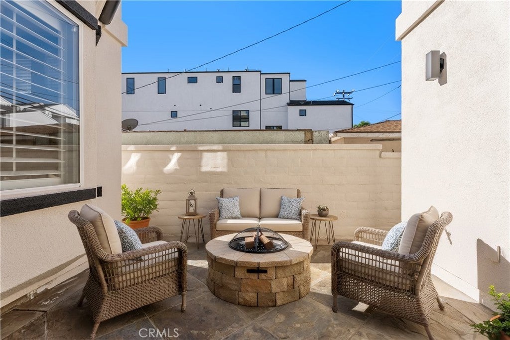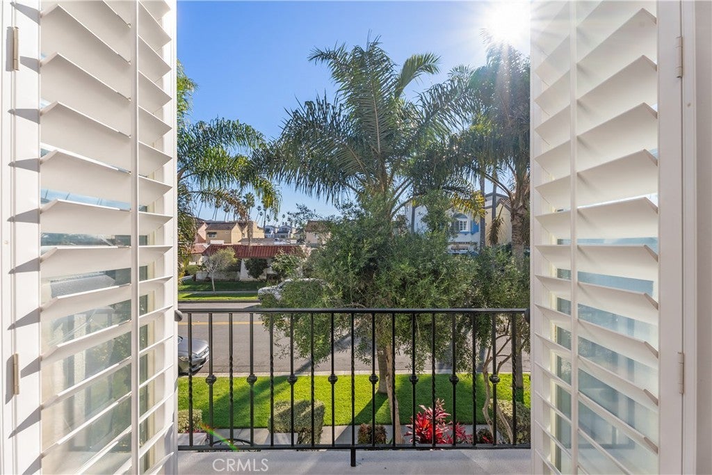 Gorgeous three-story beachside residence located blocks from the ocean and minutes from downtown Huntington Beach, offering convenient access to the Pier, Main Street dining, shopping, and entertainment. This beautifully designed home features 3 bedrooms, 3 full bathrooms, and 2 powder rooms with a spacious layout that blends modern finishes and coastal charm. The first level offers new hardwood floors with 9+ foot ceilings, abundant natural light, plantation shutters, and French doors opening to a private landscaped front patio, creating seamless indoor-outdoor living. The gourmet kitchen is appointed with a soapstone island, Calacatta marble countertops, SubZero and Viking stainless steel appliances, and a wine cooler, complemented by an elegant dining area and breakfast nook with bay window overlooking a side patio ideal for outdoor dining. First-floor amenities include a powder bathroom, laundry room, and direct access to the garage. The home is equipped with whole house water softening, app-accessible smart features including Lutron autonomous lighting, MyQ garage entry access, and central AC with Nest equipment for enhanced convenience and efficiency. The second level features a spacious family room with a dramatic double-height ceiling, fireplace, and expansive windows, along with a primary suite offering dual closets including a walk-in, a spa-style bathroom with jetted tub and separate shower, and French doors leading to a private balcony. Secondary bedrooms share a Jack-and-Jill bathroom, with an additional separate powder bathroom located in the hallway. The third level provides a generous multipurpose room with built-in shelving suitable for a home office, den, or additional living space, plus a full bathroom with shower and access to another private balcony. Located within a highly regarded school district, this home offers a rare opportunity for coastal living with various outdoor spaces, flexible living areas, and a prime Huntington Beach location.