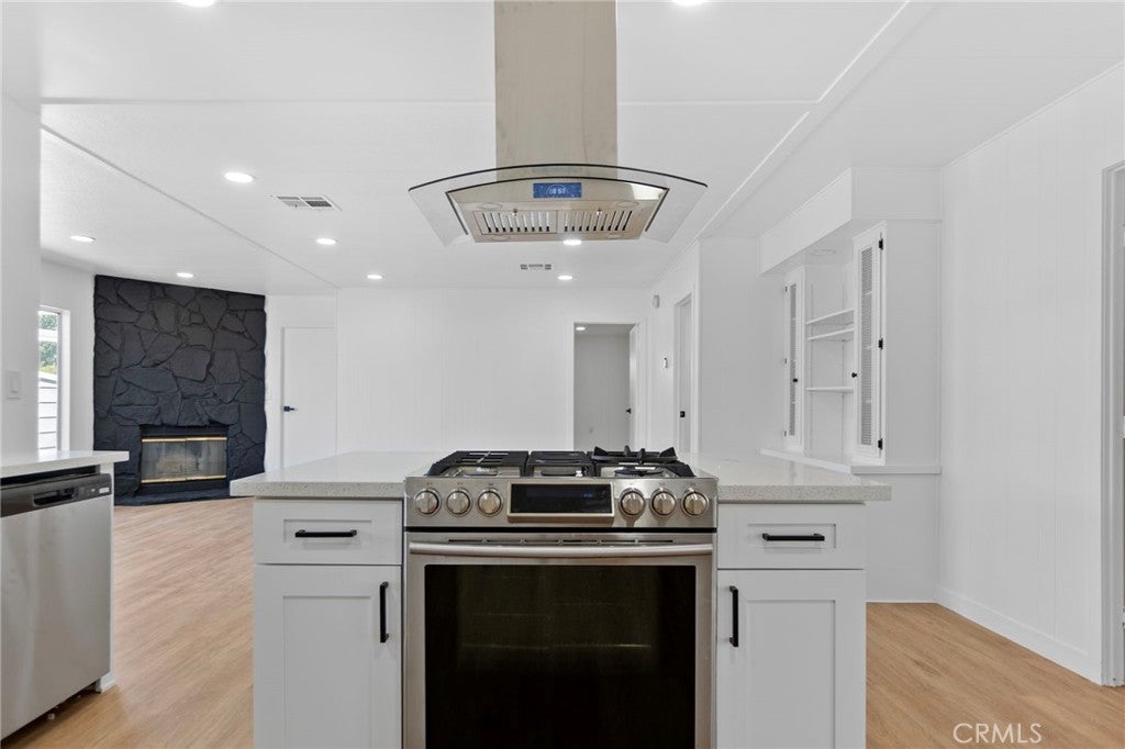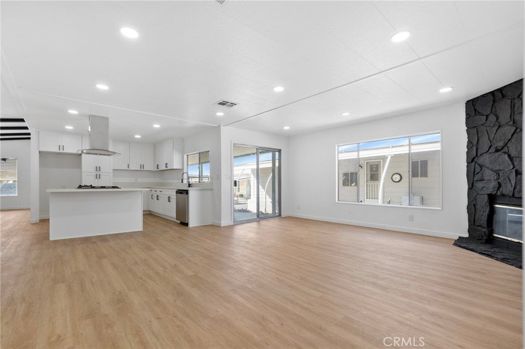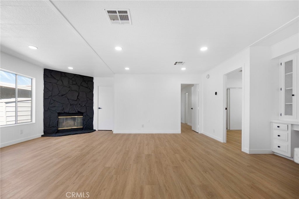 Welcome to this beautifully fully remodeled and spacious home offering over 2,000 sq. ft. of comfortable living space in 55+ Senior Community. Featuring two bedrooms and two full bathrooms, this property blends modern updates with a bright, open layout that’s perfect for entertaining or everyday living. Step inside to a large living room that flows seamlessly into the formal dining area. The expansive family room is a true highlight - featuring a stunning decorative stone wood-burning fireplace, a built-in desk with cabinetry, and a massive walk-in closet for extra storage. A sliding glass door opens to the large covered front patio, creating an ideal space to relax and enjoy the breeze. The modern kitchen boasts a gas stove top, dishwasher, refrigerator, and a breakfast bar, perfect for casual dining and gatherings. The individual laundry room offers plenty of storage, counter space, and a pantry area, with convenient access to the side exit. The primary suite features a large wood-paneled walk-in closet and a luxurious en suite bathroom with custom cabinetry, double sinks, a vanity area, a walk-in shower, and a separate soaking tub for ultimate comfort. Located in a prime area close to shopping, restaurants, churches, and the new Groves Center, everything you need is just steps away. This move-in-ready, fully remodeled home is a rare find - come see it today!