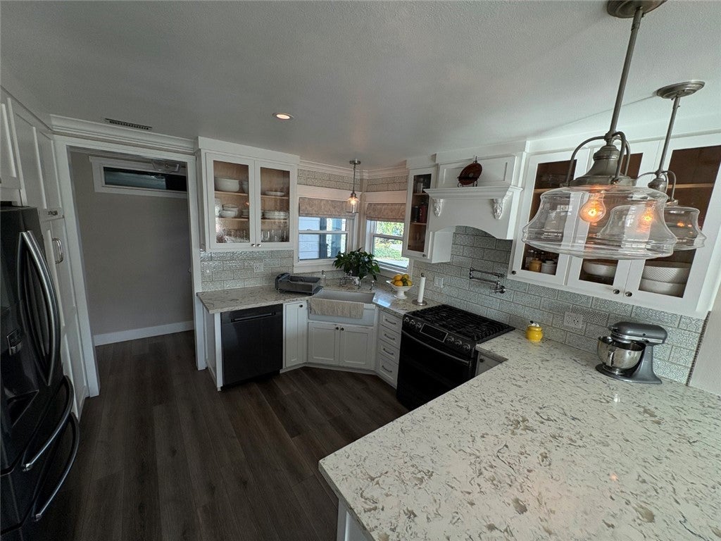 Remodeled Craftsman style 3 bedroom (with 4th 2nd floor office/"bedroom" adjacent to master), 3 bathroom home - this is NOT your typical tract home! Elegantly appointed with unparalleled designer finishes! Must see pictures and in-person to truly appreciate the quality and craftsmanship - this home will rent quickly! * Bright, open gourmet kitchen w/ custom white wood cabinetry including uppers with glass windows, white quartz countertops with gray marbling, gorgeous custom tile backsplash, farmhouse sink with double windows and pendant light, quality appliances including a chef caliber stove, refrigerator and wine fridge, breakfast bar with two pendant lights, pantry closet, and hardwood floors (see pictures to appreciate). * Adjacent dining area with custom wood cabinetry bookending table area including full serving station. * Living room features an inviting fireplace with custom mantle, soffit ceiling with recessed lighting, hardwood LVT flooring and sliding glass door to backyard. * Master suite is out of this world. Huge primary bedroom space with sitting area, recessed lights, ceiling fan, multiple closets and entertainment system hook-ups. Unbelievable ensuite bathroom with custom tile walk-in shower with adjustable rain showerhead, separate jacuzzi tub, massive dual sink vanity white shake cabinetry and quartz countertop (including a sit-down makeup station), beautiful tile flooring with inlay, custom & recessed lighting and massive walk-in closet with built-ins. * Original ground floor master bedroom features remodeled ensuite bath with custom tiled walk-in shower, single sink vanity with designer fixtures, custom lighting and frosted window. * Additional bedrooms are all quite spacious with generous closet space and custom lights in each. * Office/4th "bedroom" adjacent to master bedroom. * Completely remodeled ground floor bathroom is a showstopper and features clawfoot bathtub, custom tile, large vanity, subway tile, contemporary chandelier and craftsman three panel door with lead glass window. * CENTRAL AIR CONDITIONING! * Craftsman designer finishes in nearly every room. No detail has been missed. * L shaped driveway leads to a two car attached garage with automatic opener and tons of storage. RV/boat/other storage possibilities. * Nicely landscaped backyard with concrete patio, firepit and lawn area - perfect for entertaining. Small pet MAY be considered with EXCEPTIONAL credit and financials.