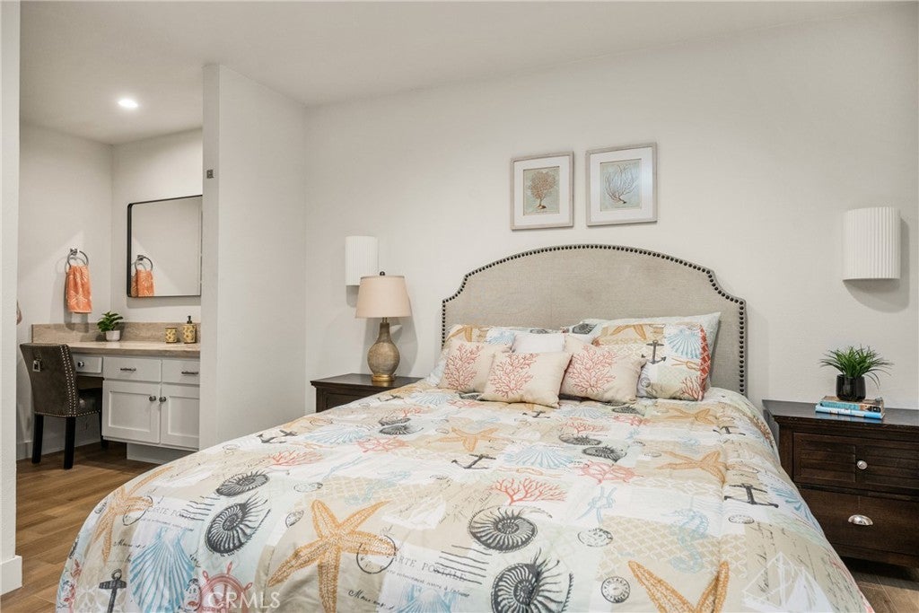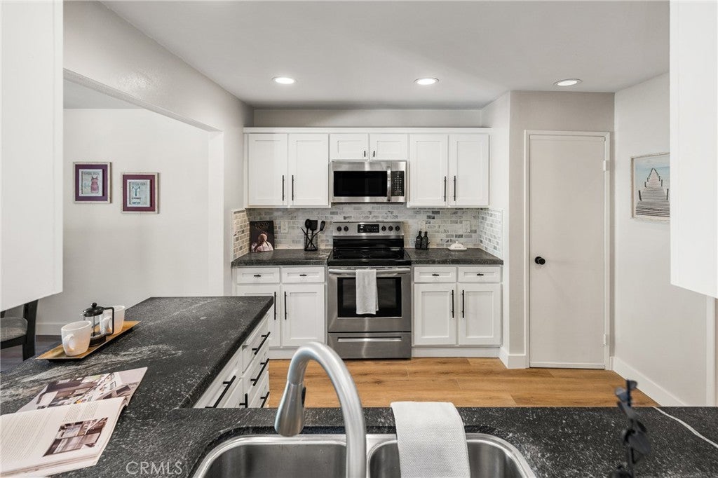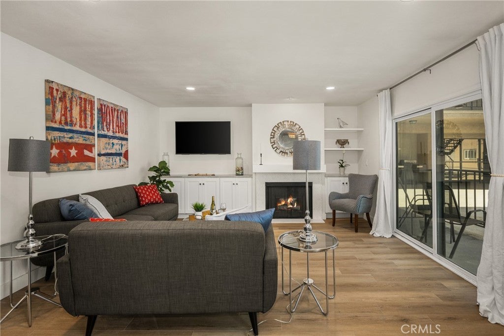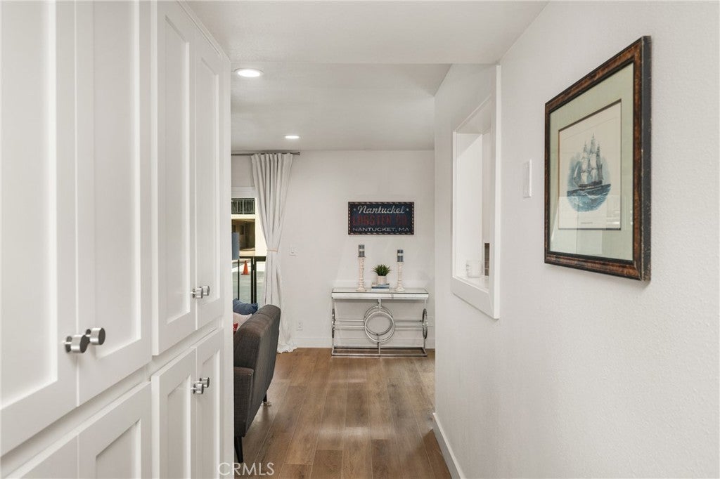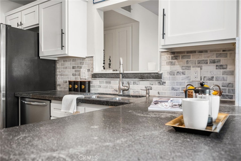 WOW! There is no other condo like this on the market right now! Completely renovated 2 bedroom/2 bath single level home with a gas fireplace and patio! A complete renovation was done, so you don’t have to do a thing! The location is one of the best in the building being adjacent to the pool/spa, and Club Room! Recent upgrades include: New kitchen with honed granite countertops, a beautiful marble tile backsplash, and under cabinet lighting! Kitchen also includes a generous sized pantry with tons of storage! New LVP flooring throughout the entire condo! Completely renovated baths with quartz countertops and tiled surrounds in showers, and around the shower tub combo. Stackable Washer/Dryer are included, as well as the refrigerator! The living room includes new shelving to the right of the fireplace, as well as new cabinetry to the left, for more storage, topped with quartz counters! Primary Bedroom includes Walk In Closet! Central A/C and Heat throughout, with the A/C unit just five years old! Patio off of living room-with a new slider, looks out onto a courtyard and soon to be placed pergola, with grills and seating areas! Condo also includes all new recessed lighting throughout! TWO Side by Side parking spaces are in a secured parking area with 2 storage cabinets in front of each space! The spaces are just steps from the elevator! EV Chargers can be installed at your parking spaces! Large Clubhouse, with Kitchen, Pool Table, and Lounging area! Gym, Pool, Spa, and Sauna are also part of the amenities! HOA Dues include Water/Trash and Gas! Great location-walking distance to The Shops at Rossmoor and Old Ranch Towne Center- both having wonderful shopping, restaurants and grocery stores. Great access to the 22 and 405 Freeways! This home, in its prime location, is ready to move into and start living a great lifestyle!