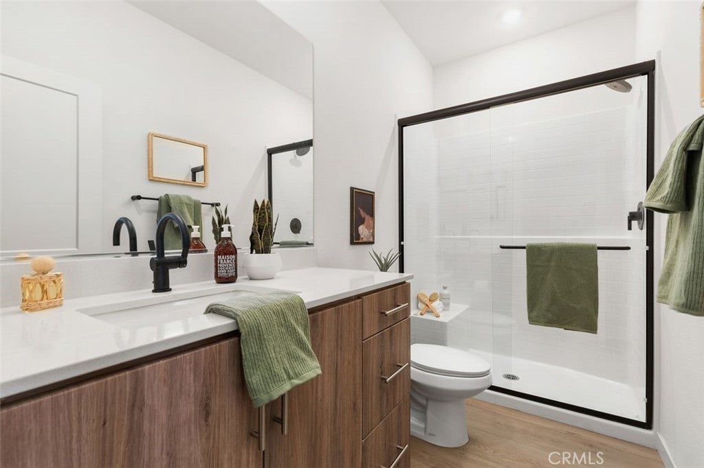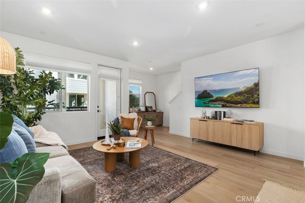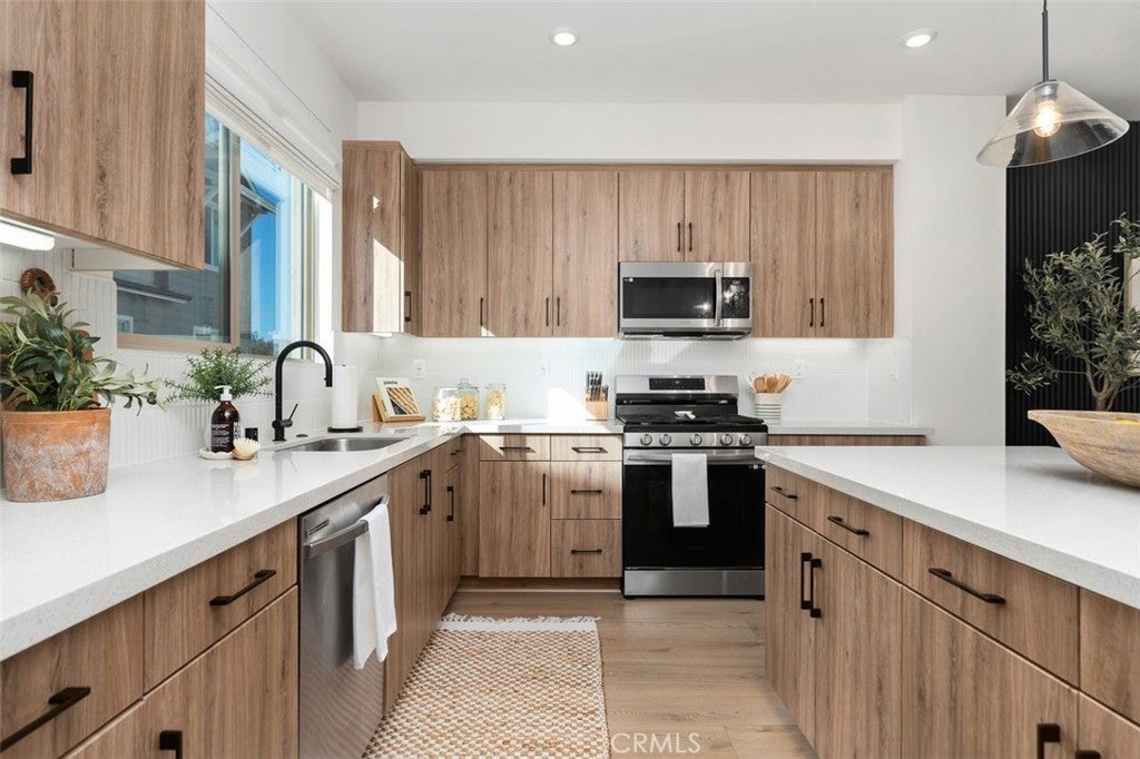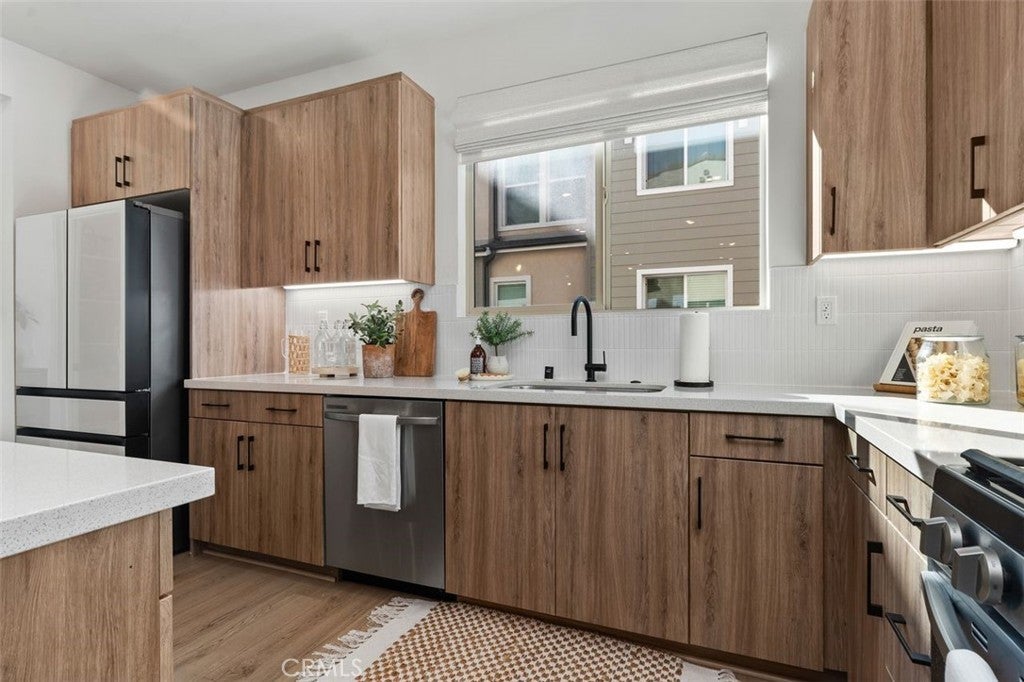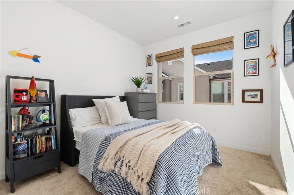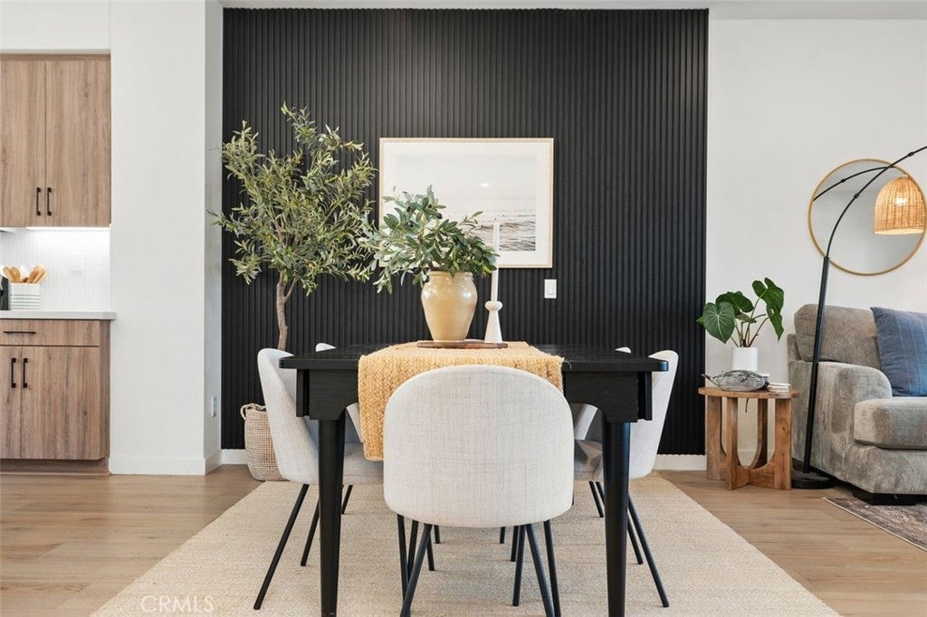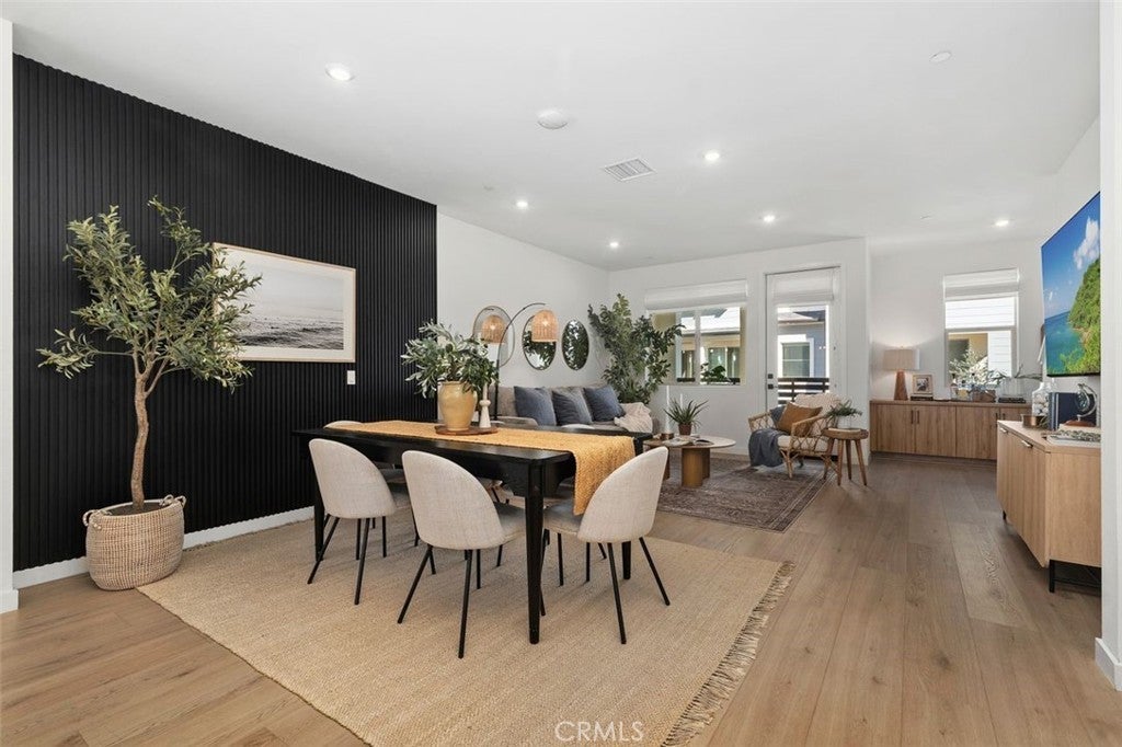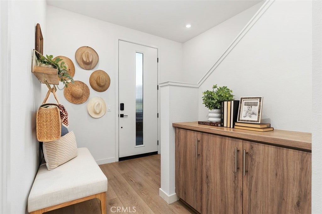 Nestled within the hillside setting of Avelina in San Juan Capistrano, this nearly brand-new 4 bedroom, 3.5 bath with owned solar Spanish beauty offers effortless indoor living and scenic trails just outside your door. A gated front patio sets the tone, inviting you to slow down and take in views of the rolling coastal hills. Step through the impressive front door into a welcoming entry layered in blonde luxury vinyl plank flooring. The main level offers a flex room that easily adapts as life evolves—work, guests, play —along with thoughtful storage and a beautifully appointed bath. Upstairs, sunlight pours through multiple windows, filling the open-concept living space with warmth and energy. Designed as a natural gathering place, the kitchen beckons with warm wood-grain cabinetry, white quartz countertops, and an expansive island detailed with custom tile and pendant lighting. The oversized walk-in pantry is a hidden gem, offering sunlit workspace, appliance storage on generous counter space, and floor-to-ceiling shelving that keeps everything beautifully within reach. A striking wood accent wall anchors the dining area, flowing seamlessly into the family room—perfect for movie nights, celebrations, or slow weekends at home. Beyond, a private balcony entices you to linger with a favorite drink, savoring uninterrupted views of the golf course and hillside beyond. High ceilings, built-in storage and a convenient powder bath complete this level. The third floor is a peaceful retreat, featuring three additional bedrooms, two full baths, and laundry. The primary suite positioned for optimal privacy offers a walk-in closet, modern ceiling fan and a spa-inspired bath with a beautiful pillow-edged tile shower. Additional highlights include owned solar, custom window coverings, white shaker doors, two-car garage with tankless water heater and adjustable overhead storage, low HOA, + Landsea Homes High Performance Features with Apple HomeKit™ smart home technology allowing you to control AC, lights, doors and more from your phone. Enjoy Avelina amenities including fire pits for s’mores under the stars, tot-lot, cornhole, workout station and direct access to the beach-bound San Juan Creek Trail inviting sunset walks & weekend bike rides. All just minutes from the Mission, the Los Rios Historic District, equestrian, golf, charming dining, and world-famous beaches. A home that looks as good as it feels - this is the one you’ve been waiting for!