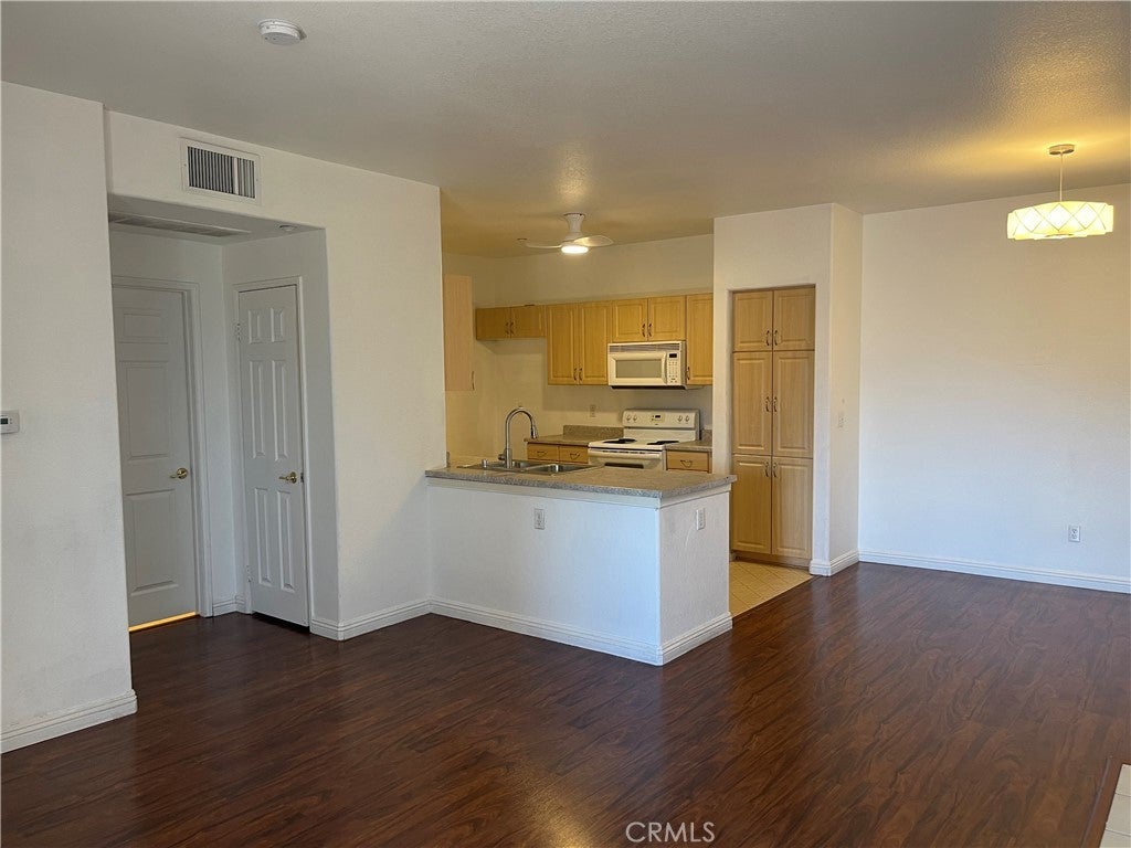 Charming 1-Bedroom, 1-Bathroom End-Unit Condo! Discover comfortable and convenient living in this delightful 854 sq. ft. condo, perfectly situated on the second floor of a serene two-story building. Ideal for first-time buyers or investors, this move-in-ready home offers privacy, modern amenities, and a prime location in vibrant Murrieta. Step inside to an inviting living space with a cozy electric fireplace, perfect for relaxing evenings. The open layout flows seamlessly into a well-equipped kitchen featuring an electric stove, dishwasher, microwave, and ceiling fan, with an adjacent laundry room including washer and dryer. The spacious bedroom boasts a generous walk-in closet, a ceiling fan, and direct bathroom access for added convenience. Enjoy resort-style living with access to a heated pool, spa, gym, fitness center, picnic area and racquetball court. Centrally located, you’re minutes from Murrieta’s shopping, dining, and entertainment, with easy highway access for commuting. Currently tenant-occupied until September 2026. Don’t miss this low-maintenance, feature-packed condo in a welcoming community! Schedule your showing today!